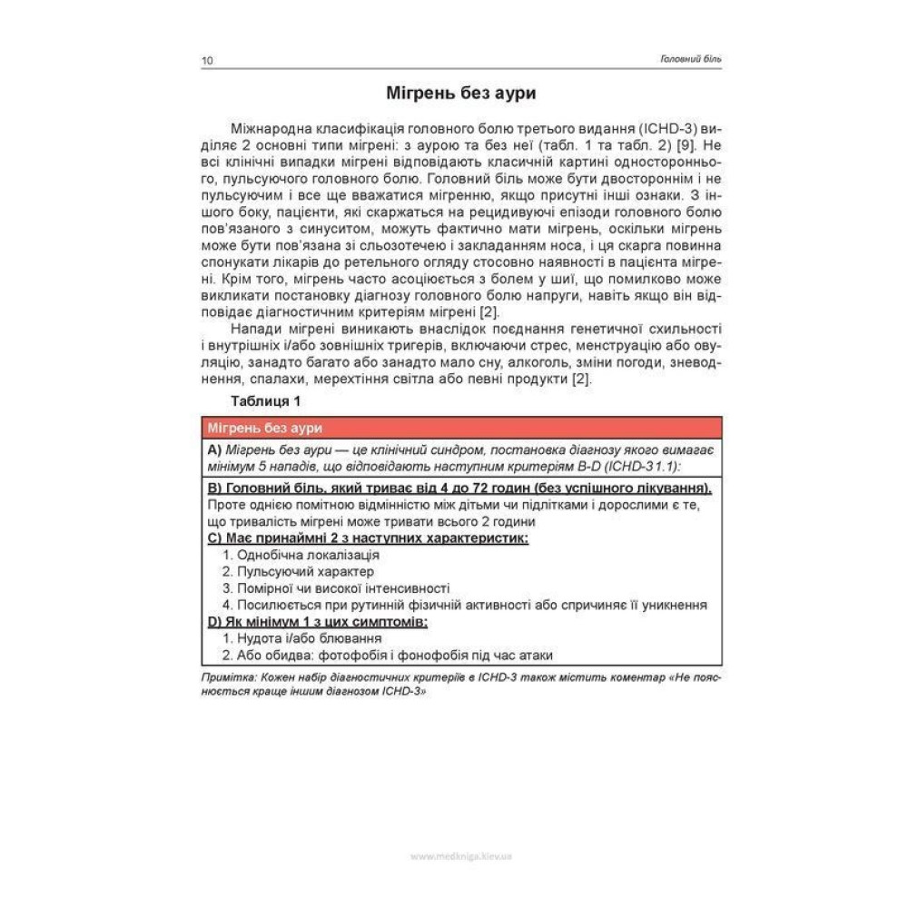 В книге «Главная боль. Учебное пособие» от Мирослава И. Боженко, Татьяны И. Негрич, Натальи Л. Боженко и Назара О. Негрича кратко изложено предоставление поэтапных мероприятий и необходимых действий врача на этапе вторичной стационарной помощи больным с головной болью, где своевременная и качественная терапия позволит улучшить.