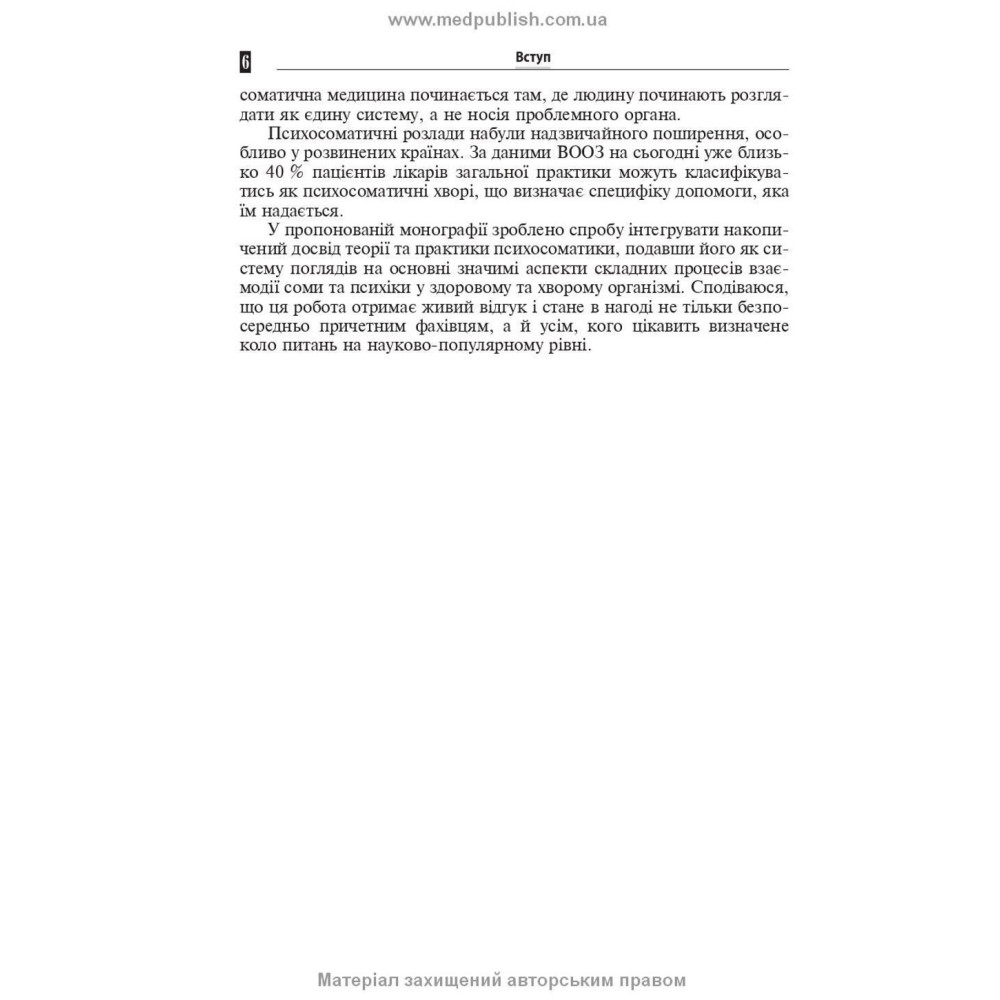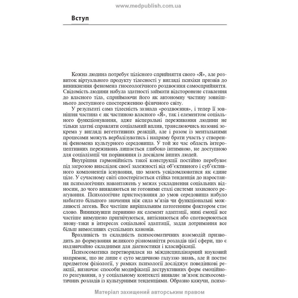 Сегодня в мире наблюдается стремительное распространение заболеваний психики, неразрывно связанных с соматическими недугами, причины которых кроются во взаимодействии факторов телесности и психики. В реалиях нашего времени в Украине эта проблема приобретает актуальное звучание.