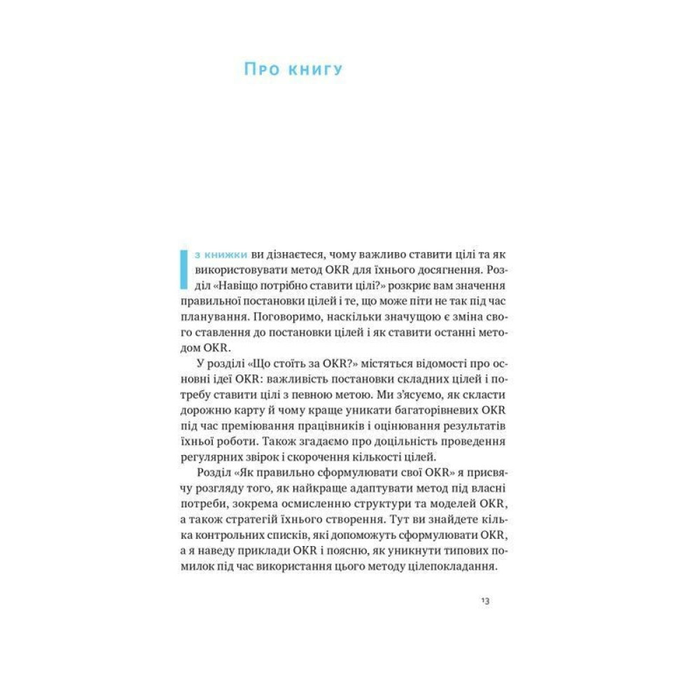 В книге Порядок в хаосе. Метод Objective and Key Results (OKR)» Константин Коптелов шаг за шагом объясняет, каковы преимущества целеполагания, какие новые подходы к планированию применяют в современном мире, а также рассказывает об основных принципах, структуре и инструментах OKR. Особое внимание уделено внедрению метода на практике и описанию типичных ошибок. Метод OKR позволит предпринимателям сосредоточиться на самом важном и получить больше за меньший промежуток времени.