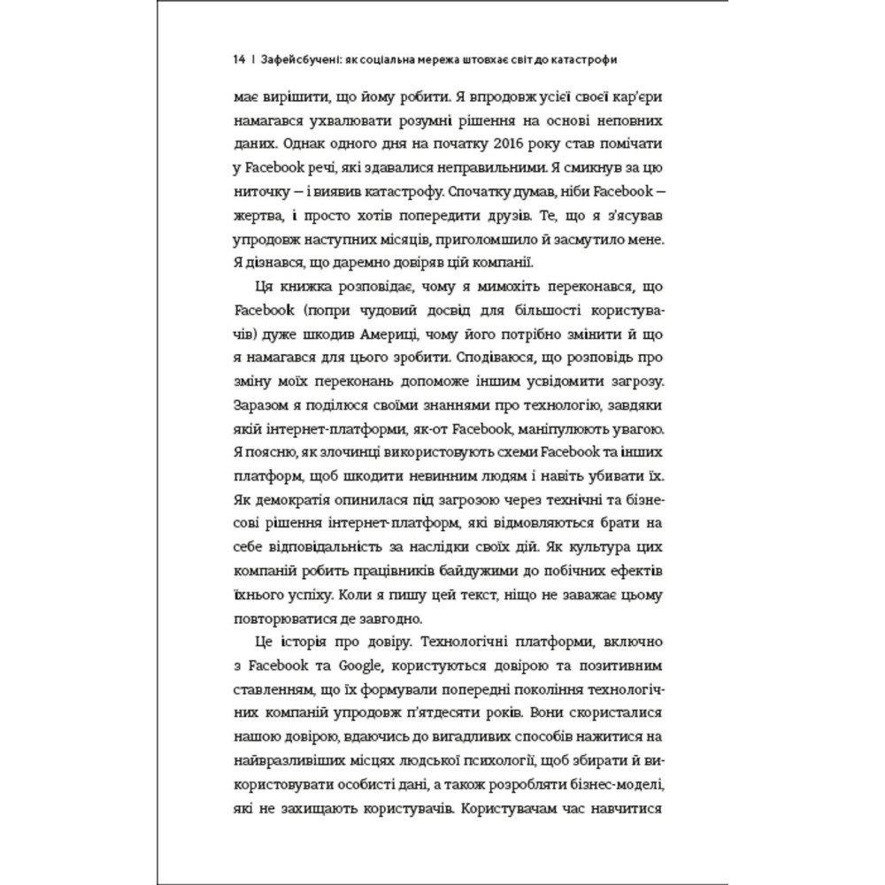 В нем автор открывает всю правду о современных технологиях, благодаря которым самые популярные соцсети манипулируют вниманием, вредят невинным людям или странам. Он рассказывает об угрозе для демократии из-за технических и бизнес-решений владельцев соцсетей, а также размышляет над тем, как найти выход из этого кризиса.