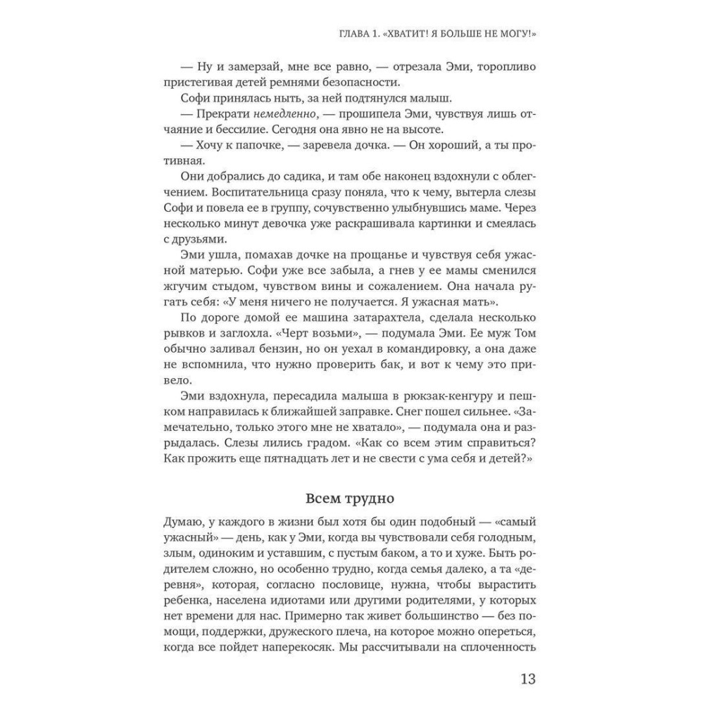 Сьюзен Поллак рассказывает о простых эффективных упражнениях, которые помогут развить в себе эти качества. Выполнение одного упражнения займет не более трех минут в день (это чистка зубов). Важна не продолжительность, а регулярность (помните: как чистка зубов?). Кроме того, для практики осознанности не обязательно сидеть неподвижно. Вы можете тренировать осознанность, когда гуляете, ждете в очереди, управляете машиной, лежите в постели, даже когда меняете подгузник. Для этого вам не обязательно находиться в одиночестве и тишине в комнате для медитаций или на вершине горы. Это то, что должно стать частью вашей безумной жизни, когда вы как родители пытаетесь успеть за 24 часа все. Когда вы больше всего в этом нуждаетесь.