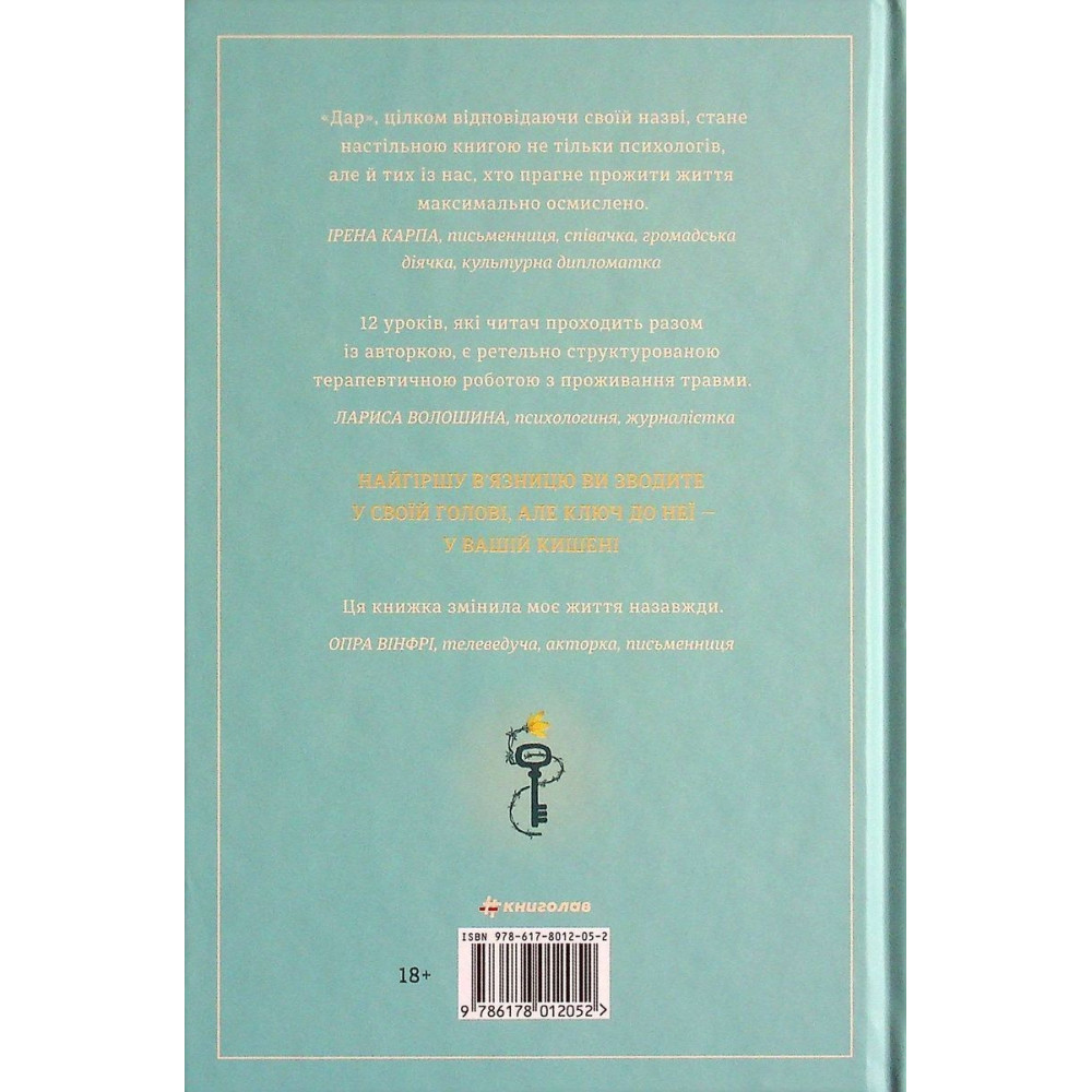 Едіт Еґер написала книжку «Дар. 14 уроків, які врятують ваше життя» на прохання читачів її бестселера «Вибір», і цей практичний посібник присвячений тому, як подбати про своє ментальне здоров’я — як жити повноцінно і не застрягати у в’язниці власного розуму.