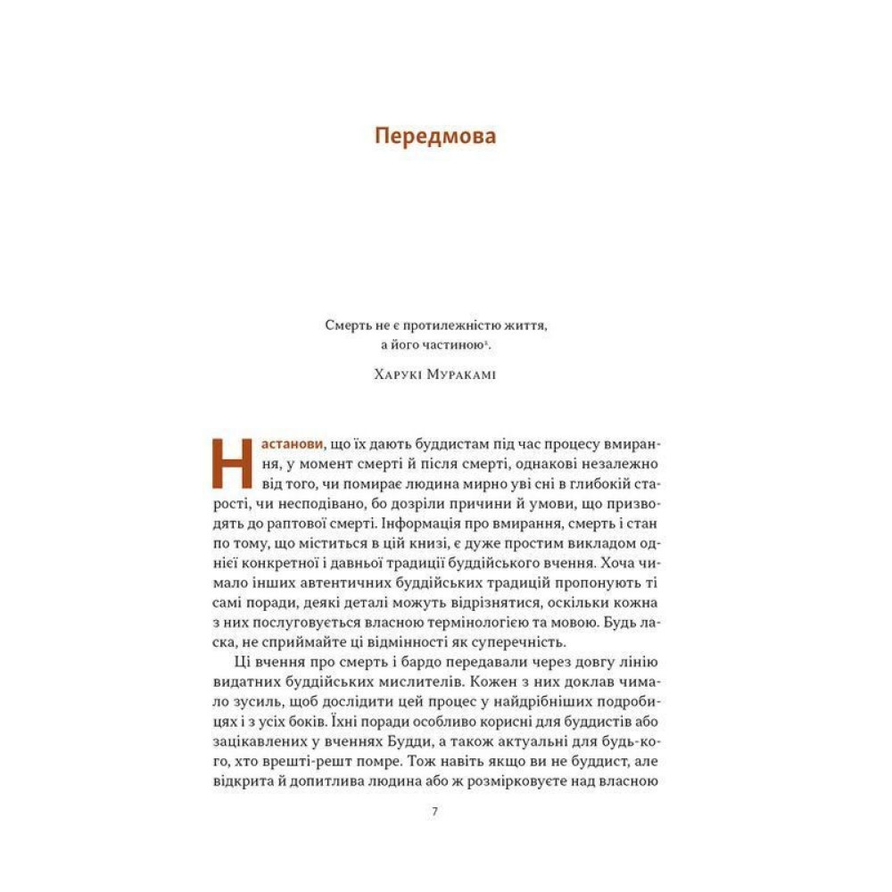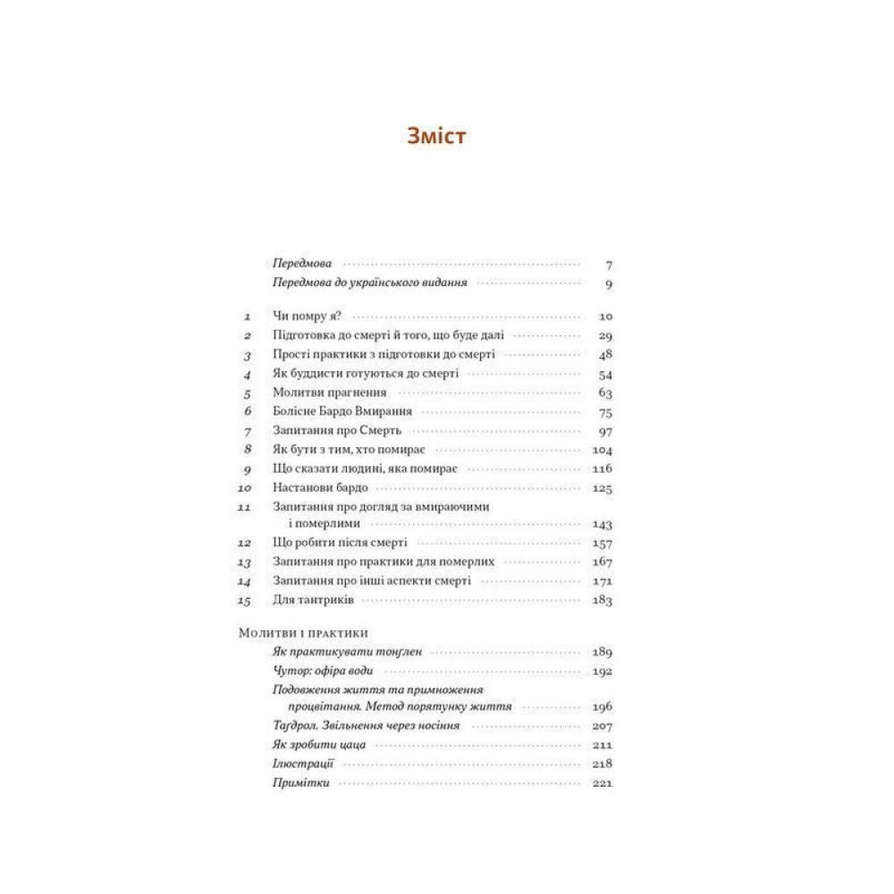 Книга пояснює, як ставитися до процесу вмирання без страху, як допомогти близьким у їхні останні дні, і як усвідомлення смертності може надати нову глибину самому життю. Вона охоплює теми медитації, карми, бардо, а також важливості співчуття та внутрішньої ясності в моменти втрат.