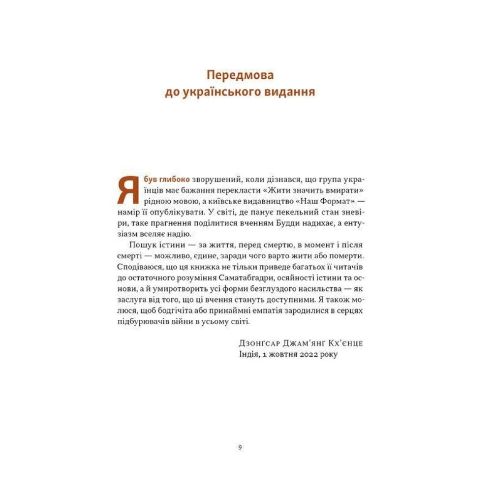 Жити значить вмирати. Як підготуватися до смерті, вмирання і того, що буде далі. Дзонґсар Джам'янґ Кхьєнце