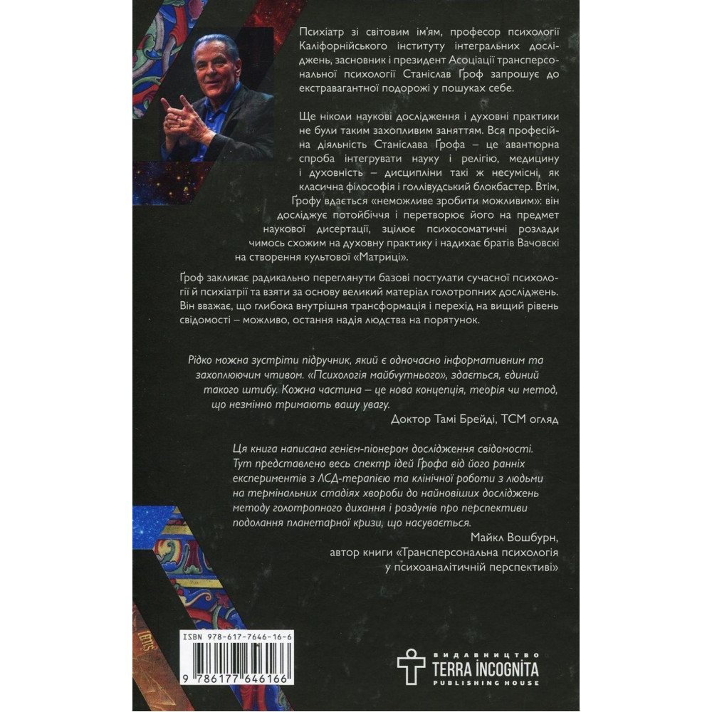 «Психологія майбутнього. Уроки сучасних досліджень свідомості» — це узагальнююча праця Станіслава Ґрофа, одного з провідних дослідників свідомості XX-XXI століть. У ній він підсумовує понад півстоліття власних клінічних спостережень, експериментів із психоделічними станами та досліджень трансцендентного досвіду.