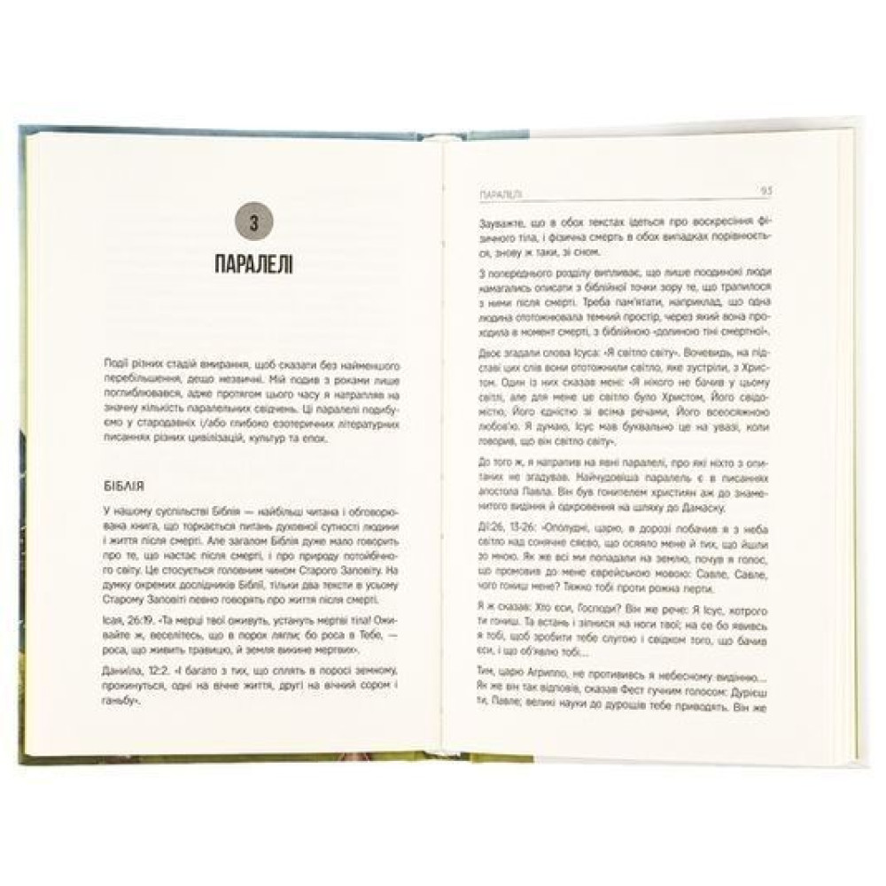Книга проводить паралелі між сучасними свідченнями та давніми джерелами — біблійними текстами, філософією Платона, містичними працями Емануеля Сведенборга та іншими духовними традиціями. Автор розглядає й наукові пояснення феномену (вплив медикаментів, нейрофізіологічні процеси), але показує, що вони не охоплюють усі аспекти пережитого досвіду.