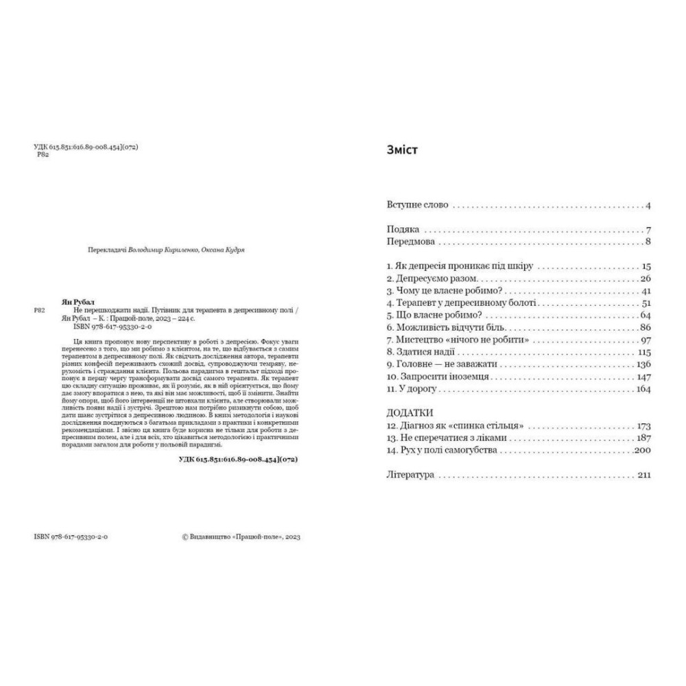 Книга «Не перешкоджати надії. Путівник для терапевта в депресивному полі» від Яна Рубала пропонує нову перспективу в роботі з депресією.
