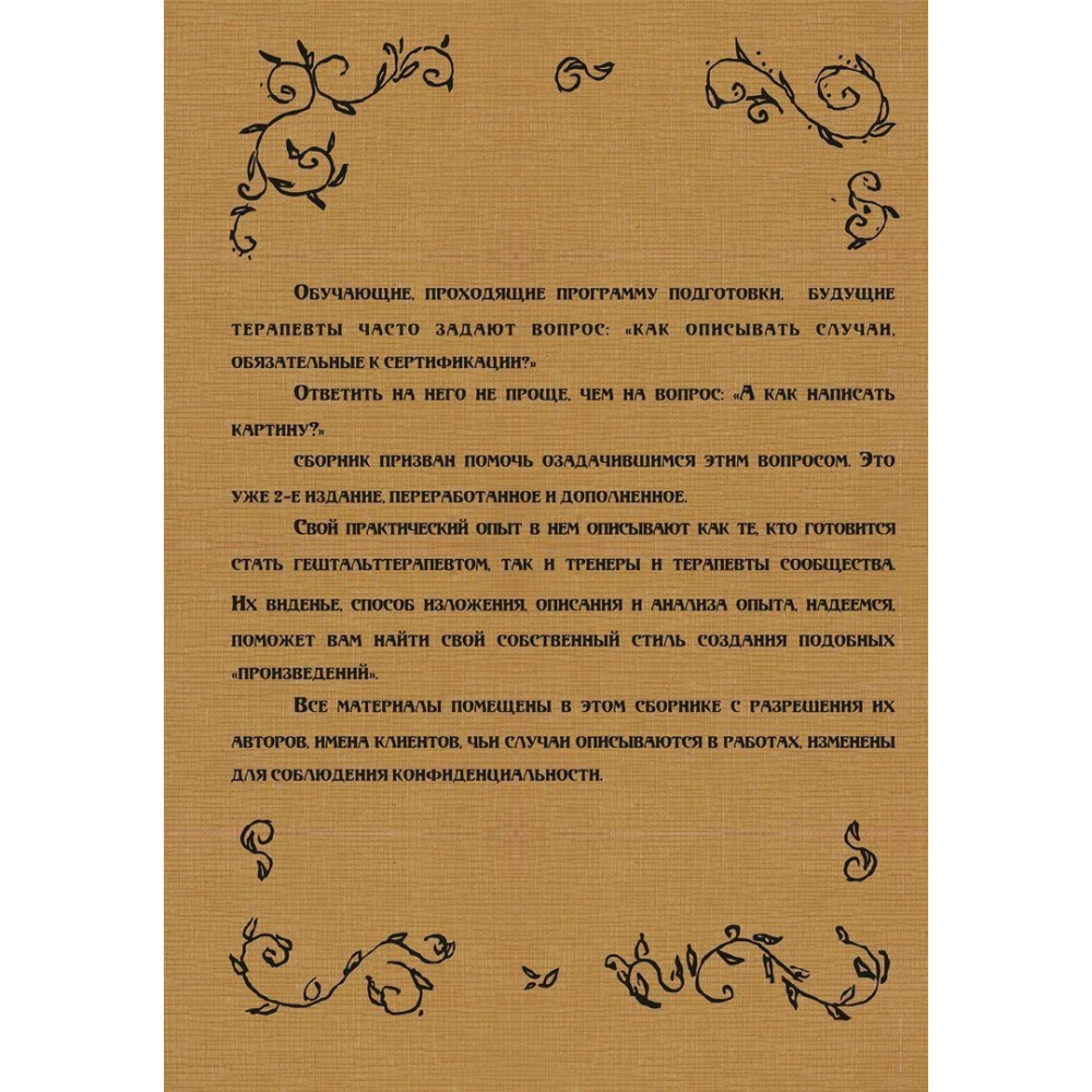 Описи випадків із практики терапевтів Ніни Соловйової та Вікторії Серлик цікаві як досвіди терапевтів, які практикують із різними категоріями клієнтів. У них на прийомі і діти, і дорослі. Вони підтримують людей у різних ситуаціях і в різних виборах.