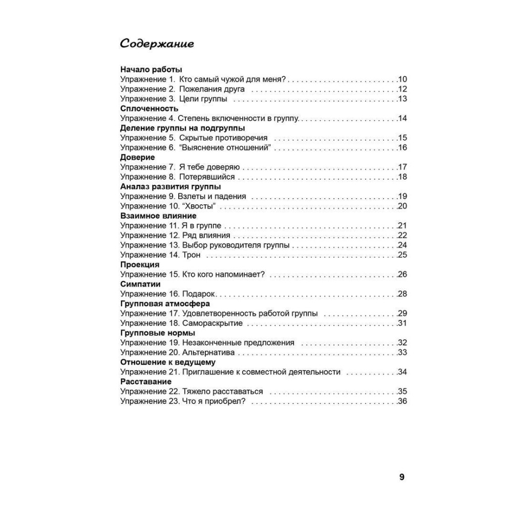 Робочі матеріали скомпоновано за конкретними напрямами: вміння працювати з конфліктами, розвиток групової згуртованості, духовне зростання та усвідомлення життєвих цілей тощо. Описано методи, що дають змогу діагностувати ситуацію в групі та підготувати учасників до завершення групової роботи. Багато вправ підходять для роботи з дітьми та підлітками.