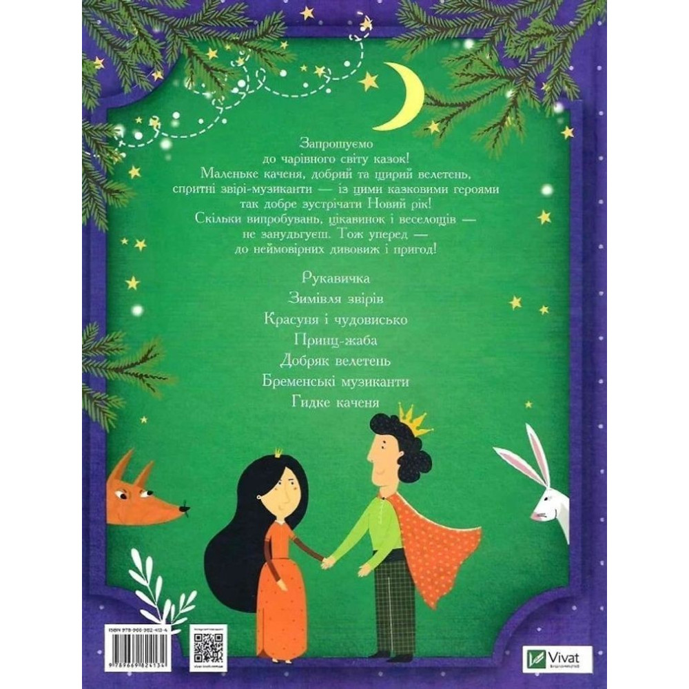 На сторінках цього збірника відбуваються справжні дива: загублена рукавичка перетворюється на дім для багатьох лісових мешканців… Красуня не дозволяє зовнішності визначати сутність особистості, а згодом відкриває серце для страшного Чудовиська, що виявився зачарованим принцом. Добряк велетень допомагає найменшим і шукає собі друзів. Гидке каченя стає витонченим лебедем неймовірної краси, на заздрість усім, хто колись із нього насміхався. Принц-жаба очікує, коли ж його поцілує обраниця долі. Бременські музиканти протистоять розбійникам і рятують короля, не забуваючи приносити людям сміх і радість… Ці та інші пригоди — ідеальне доповнення для прекрасної атмосфери новорічних свят.