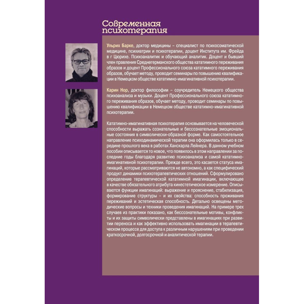 У цьому навчальному посібнику від Ульріха Барке та Карін Нор — «Кататимно-имагинативная психотерапия: Учебное пособие по работе с имагинациями в психодинамической психотерапии» — описується те нове, що з'явилося в цьому напрямку за останні роки. Насамперед це стосується статусу імагінацій, які розглядаються не автономно, а як специфічний продукт динаміки психотерапевтичних відносин.