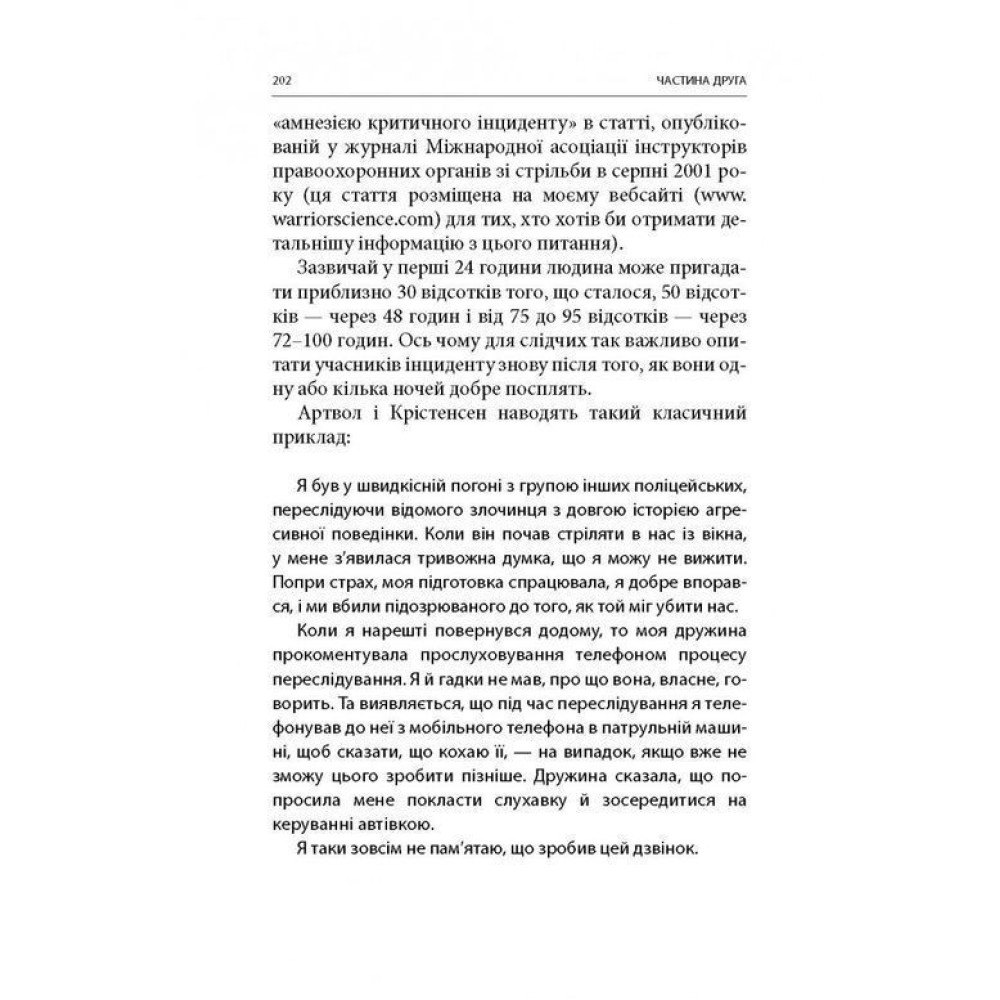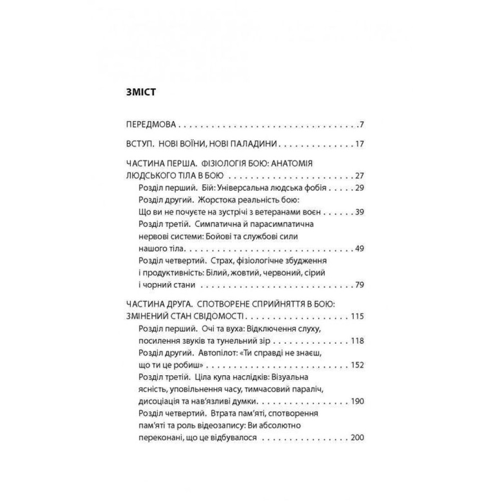 Автори дають практичні поради на рахунок того, як максимально ефективно підготувати себе до ведення бойових дій та максимально якісно виконувати бойові завдання. Ґроссман та Крістенсен на власному досвіді створили дієву методику, що працюватиме з усіма аспектами людського організму та дозволить не впадати в паніку під час стресових ситуацій.