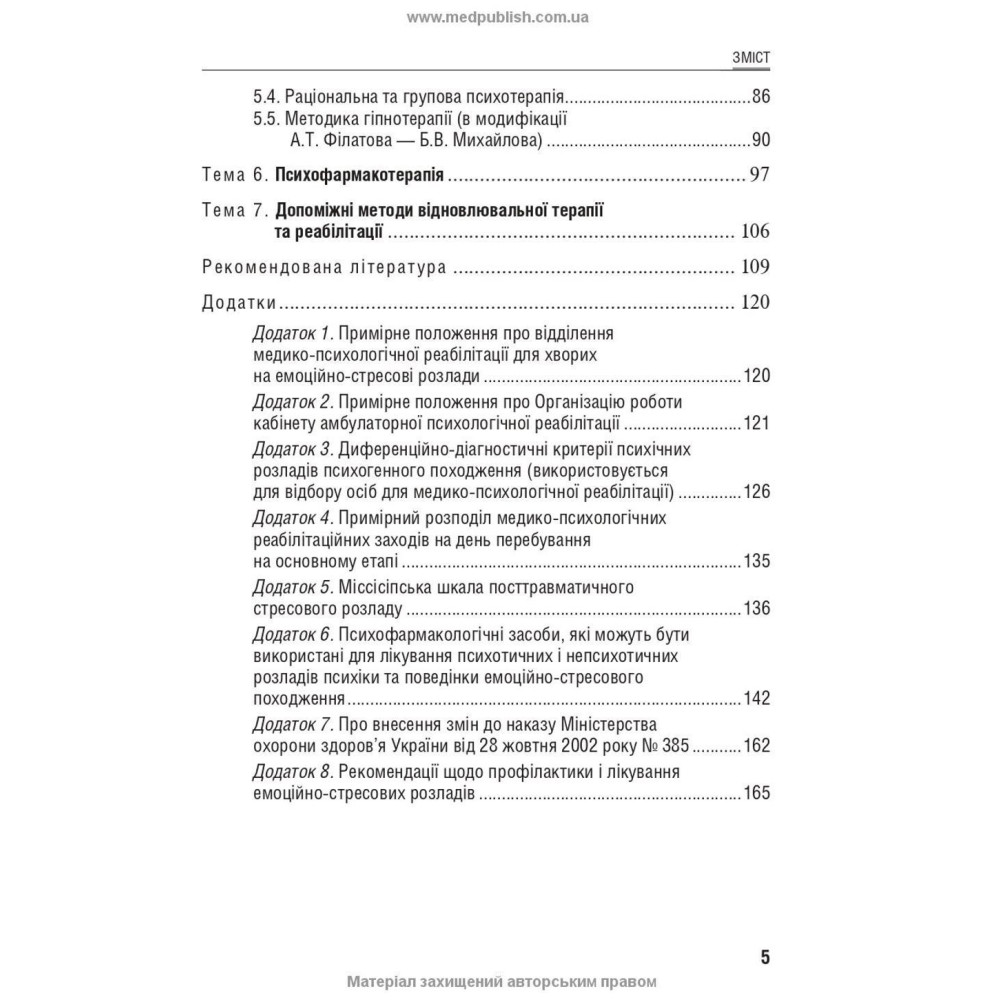 | Додаткові розділи | Клінічна психотерапія, Психіатрія та медична психологія — книги, Всеукраїнське спеціалізоване видавництво «Медицина» |