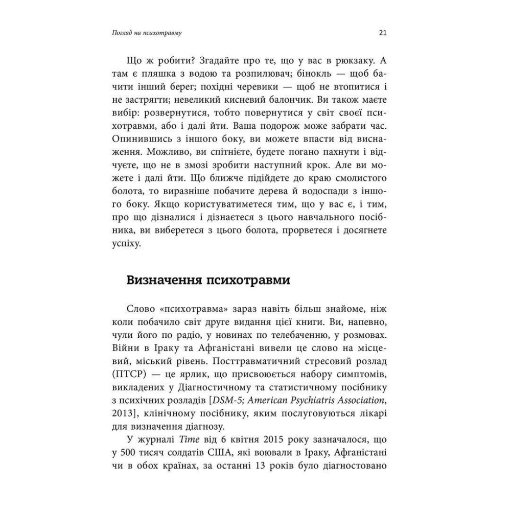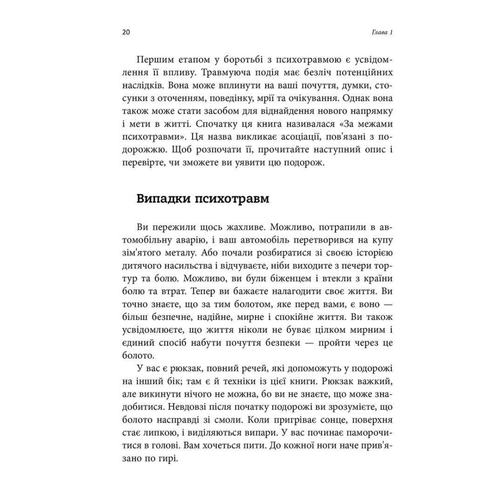 Якщо ви страждаєте на посттравматичний стресовий розлад (ПТСР) чи пережили травмуючу подію, то можете відчувати низку неприємних симптомів, зокрема флешбеки, нічні кошмари, безсоння, занепокоєння, залежність, депресію та думки про самогубство. ПТСР — важкий стан, проте його можна розглядати як початок нового позитивного життєвого етапу. За допомогою методик когнітивно-поведінкової терапії, зібраних у цій книзі, за допомогою робочого зошита з подолання ПТСР ви зможете розпочати процес зцілення, який поверне вас до життя.