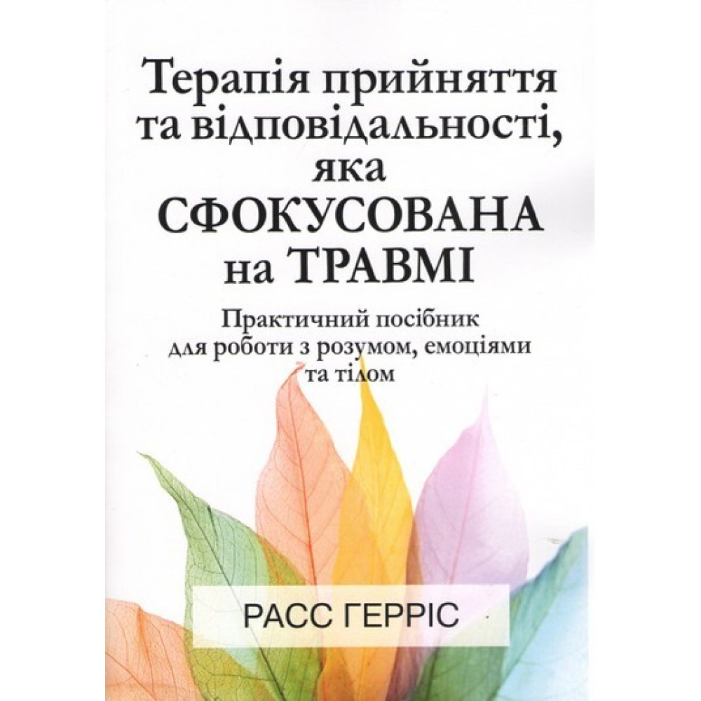 Книга Расса Герріса «Терапія прийняття та відповідальності, яка сфокусована на травмі. Практичний посібник для роботи з розумом, емоціями та тілом» присвячена ACT (TFACT), яка фокусується на травмах — гнучкій, всебічній моделі терапії усього спектру проблем, пов’язаних із травмою, як-от посттравматичний стресовий розлад (ПТСР), залежність, депресія, тривожні розлади, моральна травма, хронічний біль, сором, суїцидальність, безсоння, тяжке горе, проблеми прихильності, сексуальні проблеми тощо.