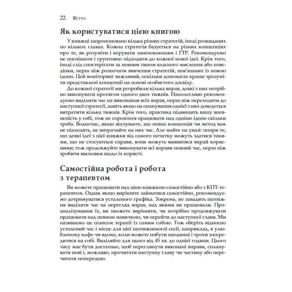 Книга навчить визначати два ключваих типи занепокоєння (поточні проблеми та уявні ситуації), знаходити конкретні шляхи боротьби з кожним з цих типів і долати рецидиви. Настав час припинити турбуватися й почати жити повнооцінним життям!