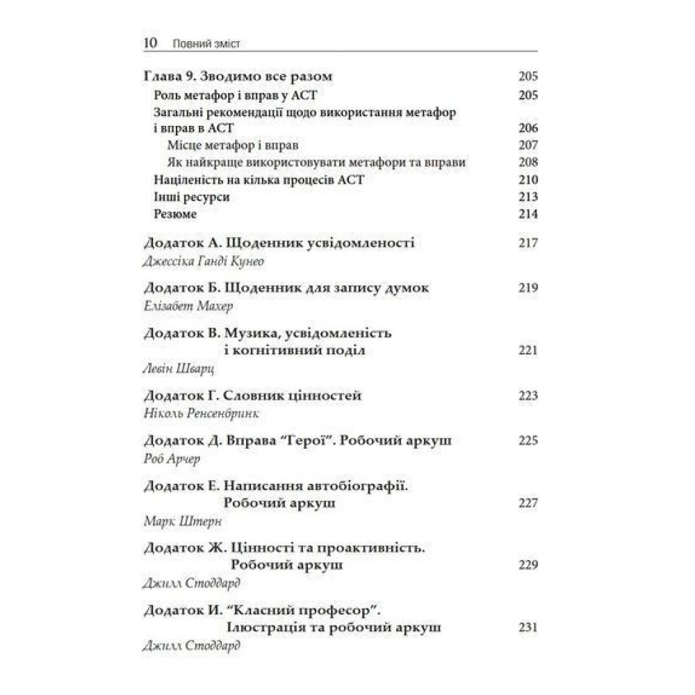 Джилл А. Стоддард та Нілуфар Афарі детально описують у практичному посібнику «Метафори в терапії прийняття та відповідальності» шість ключових процесів АСТ, а також пропонують безліч нових метафор та експірієнтальних вправ, які допоможуть розкритися, навчитися перебувати в теперішньому моменті й почати діяти.