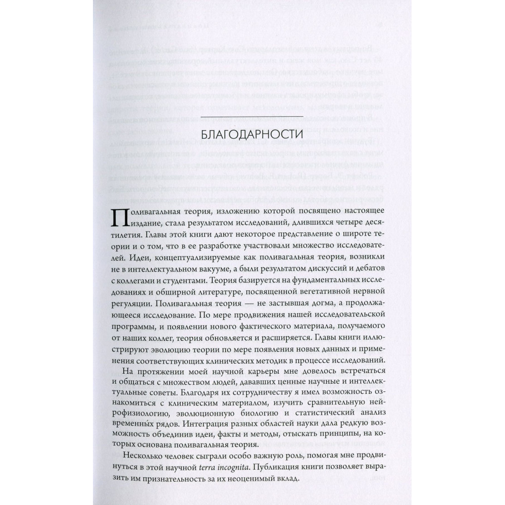 Стівен Порджес, основоположник полівагальної теорії та провідний експерт у галузі психофізіології розвитку і поведінкової нейробіології, у книзі «Поливагальная теория. Нейрофизиологические основы эмоций, привязанностей, общения и саморегуляции» розповідає, як його дослідження допомогли домогтися приголомшливих результатів під час лікування посттравматичного стресового розладу, тривоги, депресії, психологічних травм і аутизму.