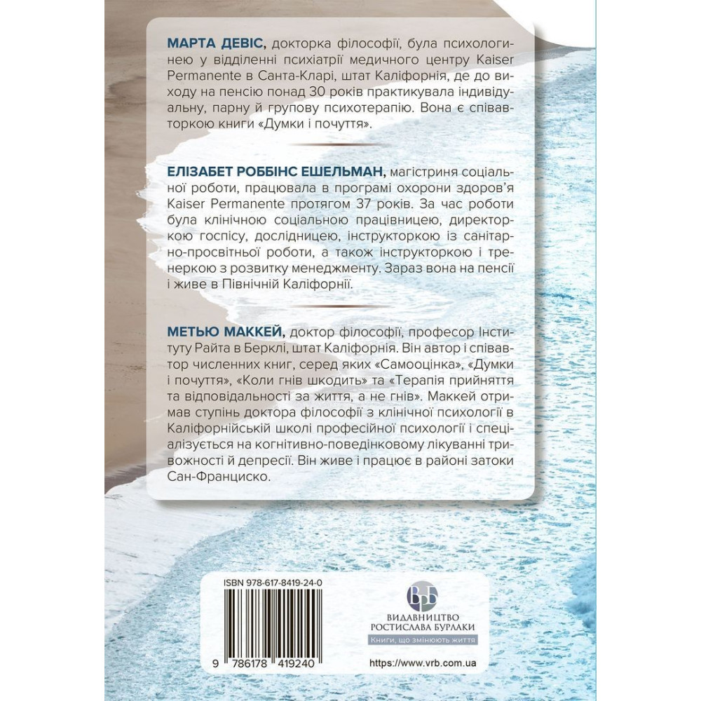 Успіх книги Марти Девіс, Елізабет Р. Ешельман і Метью Маккея «Релаксація і зняття стресу. Робочий зошит» говорить сам за себе: це вже сьоме видання і продано понад мільйон примірників. Цей оновлений робочий зошит допоможе вам дослідити власні тригери стресу, визначити свої симптоми та скласти особистий план дій для зменшення стресу.
