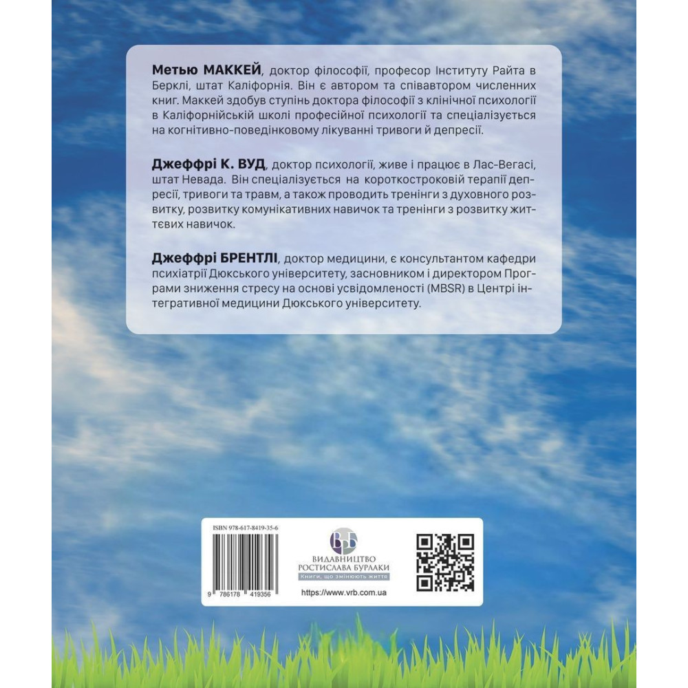 Меттью МакКей, Джеффрі Вуд і Джеффрі Брантлі — визнані фахівці у сфері когнітивно-поведінкової і діалектичної поведінкової терапій. Вони поєднують багаторічну клінічну практику з глибоким розумінням психологічних механізмів емоційної регуляції та навичок міжособистісної взаємодії, створюючи практичні й доступні посібники, що допомагають людям змінювати життя на краще.