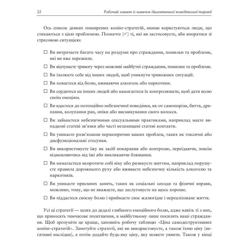 «Робочий зошит із навичок діалектичної поведінкової терапії. Практичні вправи з ДПТ для навчання усвідомленості, міжособистісної ефективності, регуляції емоцій і стресостійкості»