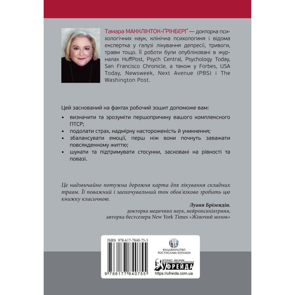 Книга «Робочий зошит з розвитку навичок подолання комплексного ПТСР», що створена Тамарою Макклінток-Ґрінберґ, запропонує комплексний підхід до подолання складного посттравматичного стресового розладу (C-PTSD) за допомогою когнітивно-поведінкової терапії (СВТ), терапії прийняття і відповідальності (ACT), діалектичної поведінкової терапії (DBT), усвідомленості, менталізації та реляційної терапії. Ви дізнаєтеся про найефективніші стратегії боротьби із симптомами, подолання хворобливих спогадів та розвитку впевненості у собі. Найголовніше — ви знайдете підтвердження того, що ваші почуття не є «божевільними» чи «надмірними», і відкриєте для себе навички, необхідні, щоб допомогти вам відновити своє життя.