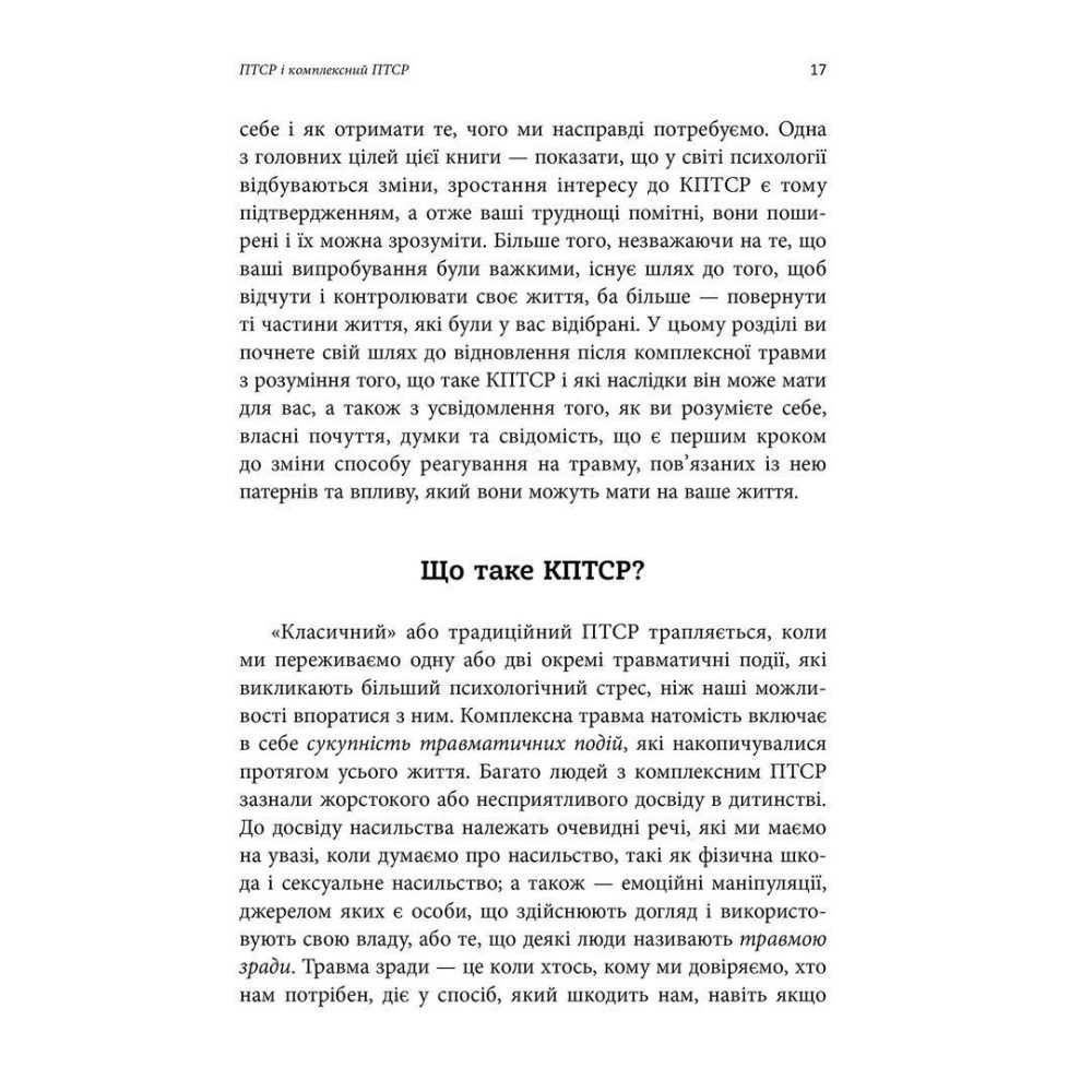 Якщо ви пережили тривалу або повторювану травму, наприклад жорстоке поводження чи зневагу в дитинстві, домашнє насильство, зраду або тривале емоційне насильство, ви можете за допомогою зошиту боротися з інтенсивними почуттями смутку, гніву, тривоги, сорому й недовіри до інших. Ви маєте знати: ви не самотні, ваш біль реальний, і є способи покращити своє психічне здоров’я і почати зцілюватися.