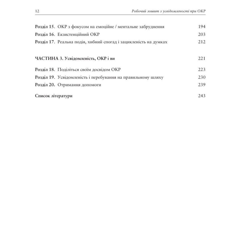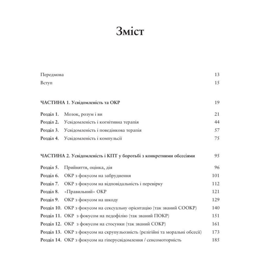 У книзі подано вправи, медитації, приклади з життя та покрокові завдання, які допомагають поступово зменшити силу обсесивних думок і відновити контроль над власним життям. Вона підходить як для самостійної роботи, так і як доповнення до терапії з фахівцем.