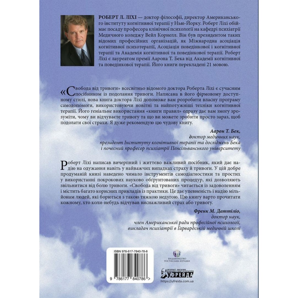 «Свобода від тривоги. Здолай тривогу, доки вона не здолала тебе» всесвітньо відомого доктора Роберта Л. Ліхі є сучасним посібником із подолання тривоги.