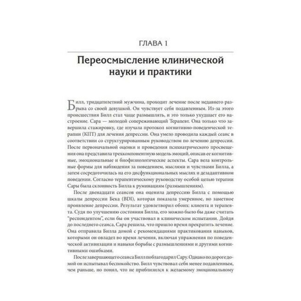 Доказові методи терапії, включно з когнітивно-поведінковою терапією (КПТ), уже давно визначено в рамках науково обґрунтованих протоколів, орієнтованих на синдроми. Ситуація швидко змінюється. Нині, у міру того як минає епоха «протоколів лікування синдромів», у доказовій терапії особлива увага приділяється процесу. У цій новаторській книзі пропонуються конкретні стратегії впровадження підходу, заснованого на процесах, у клінічну практику, а також покрокове керівництво з розробки ефективного плану лікування.