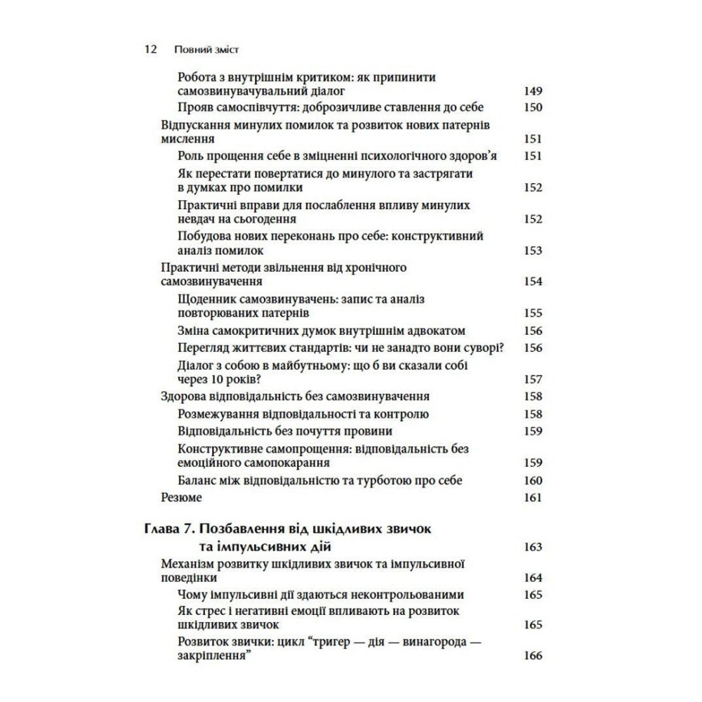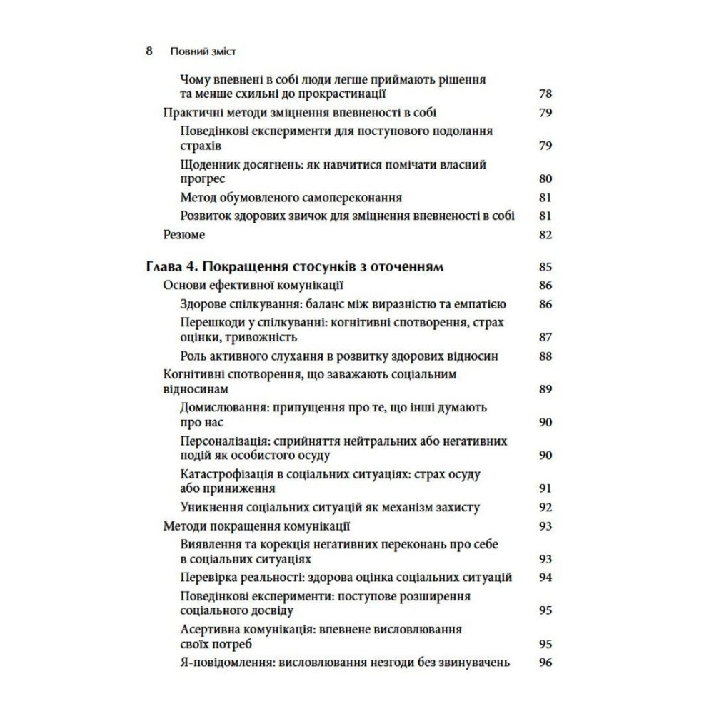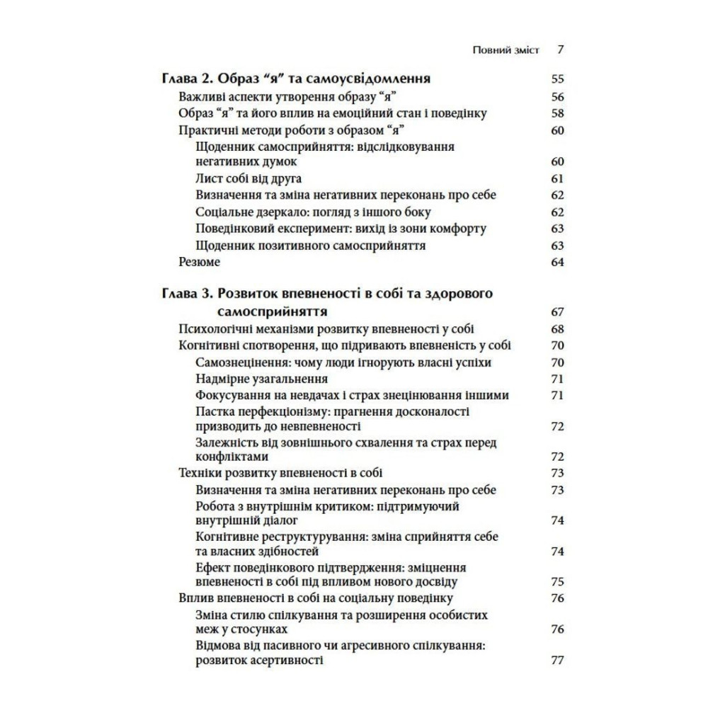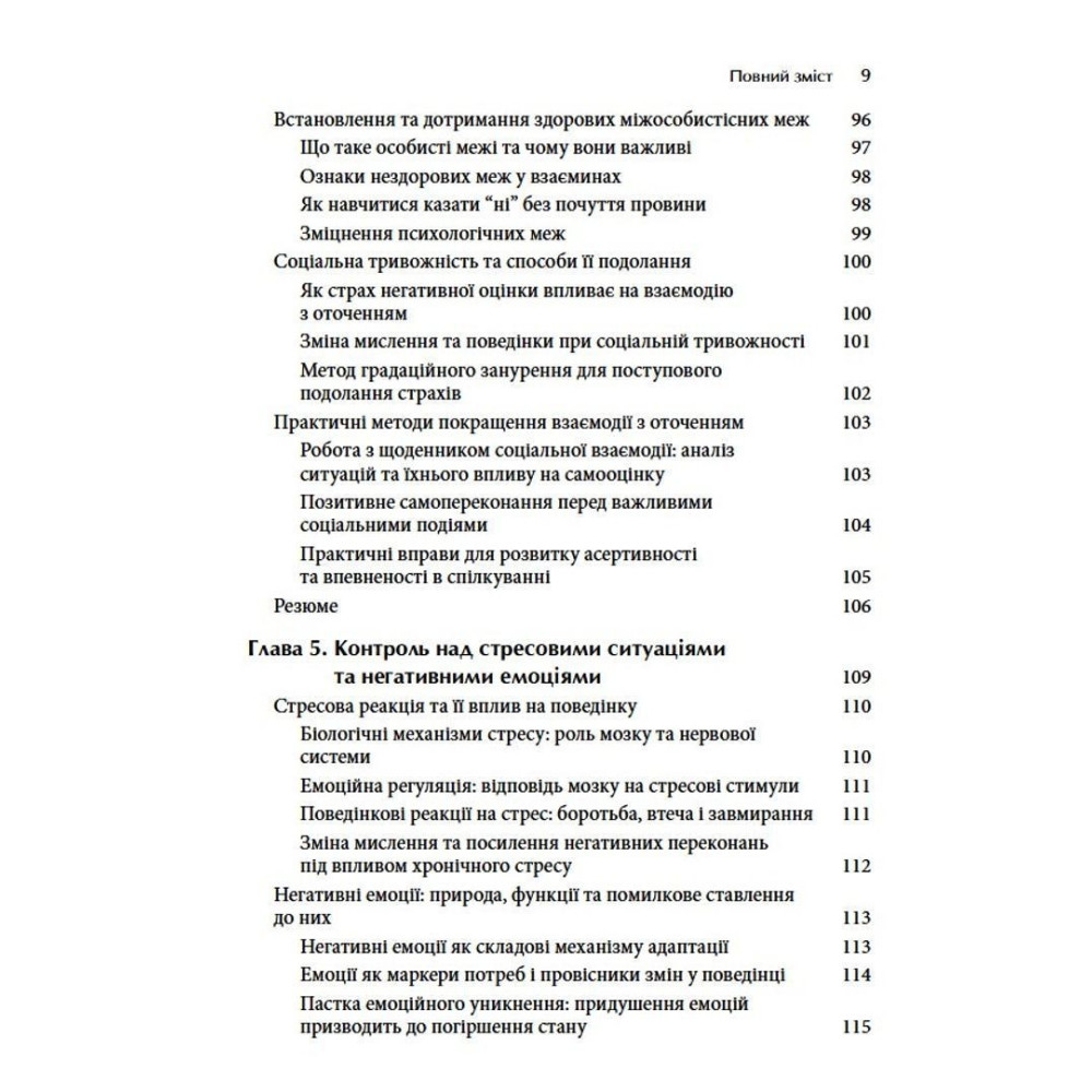 Книжка стане в нагоді всім, хто хоче змінити самосприйняття, розвинути емоційну стійкість і домогтися позитивних змін у житті. Ви дізнаєтеся, як впоратися з нав'язливими думками, подолати виснажливу самокритику, встановити чіткі особисті межі та почати будувати гармонійні стосунки.