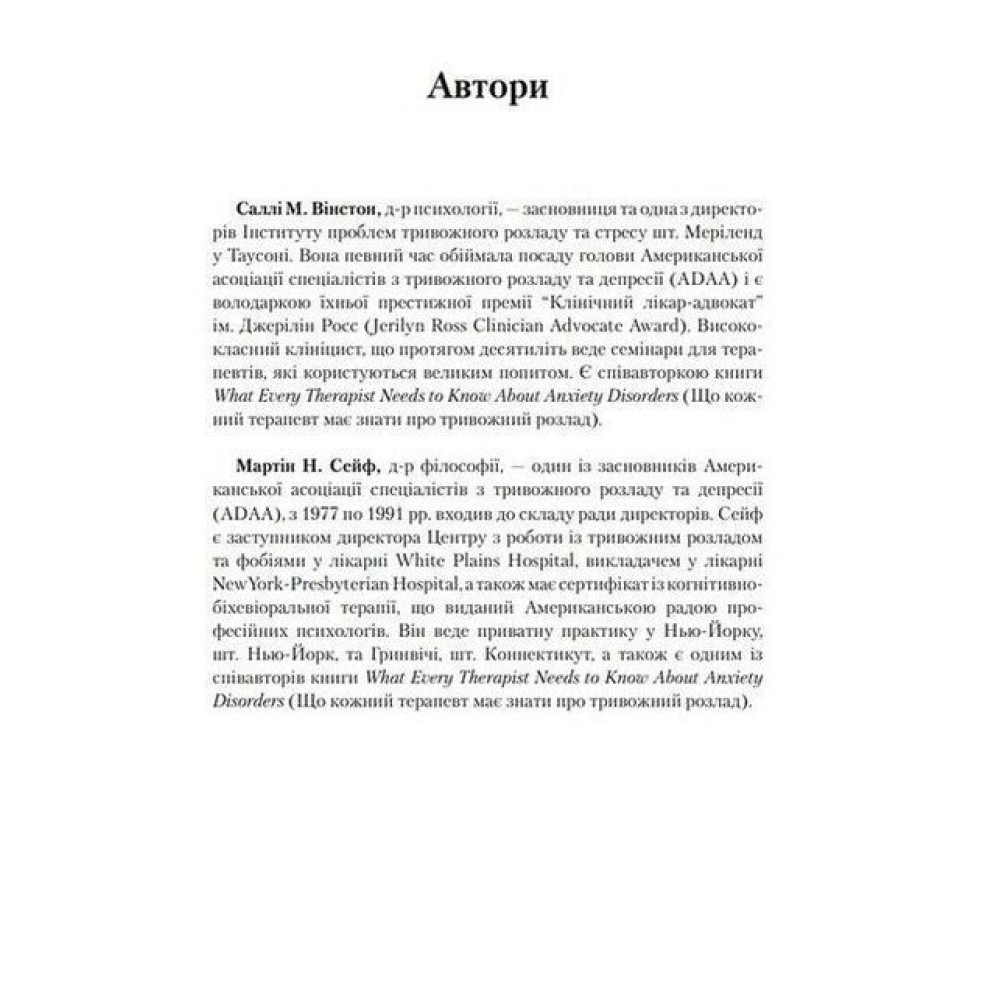 Саллі М. Вінстон — докторка філософії, засновниця та одна з директорів Інституту проблем тривожного розладу та стресу шт. Меріленд у Таусоні. Вона висококласна клінічна лікарка та вже кілька десятиліть веде популярні семінари для терапевтів.