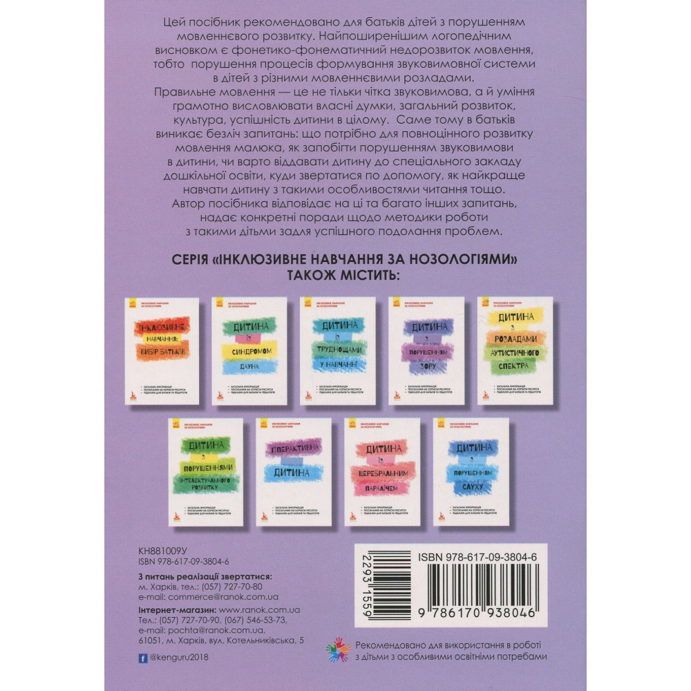 Автор посібника «Інклюзивне навчання за нозологіями. Дитина з порушеннями мовленнєвого розвитку» відповідає на ці та багато інших питань, надає конкретні поради щодо методики роботи с такими дітьми задля успішного подолання проблем.