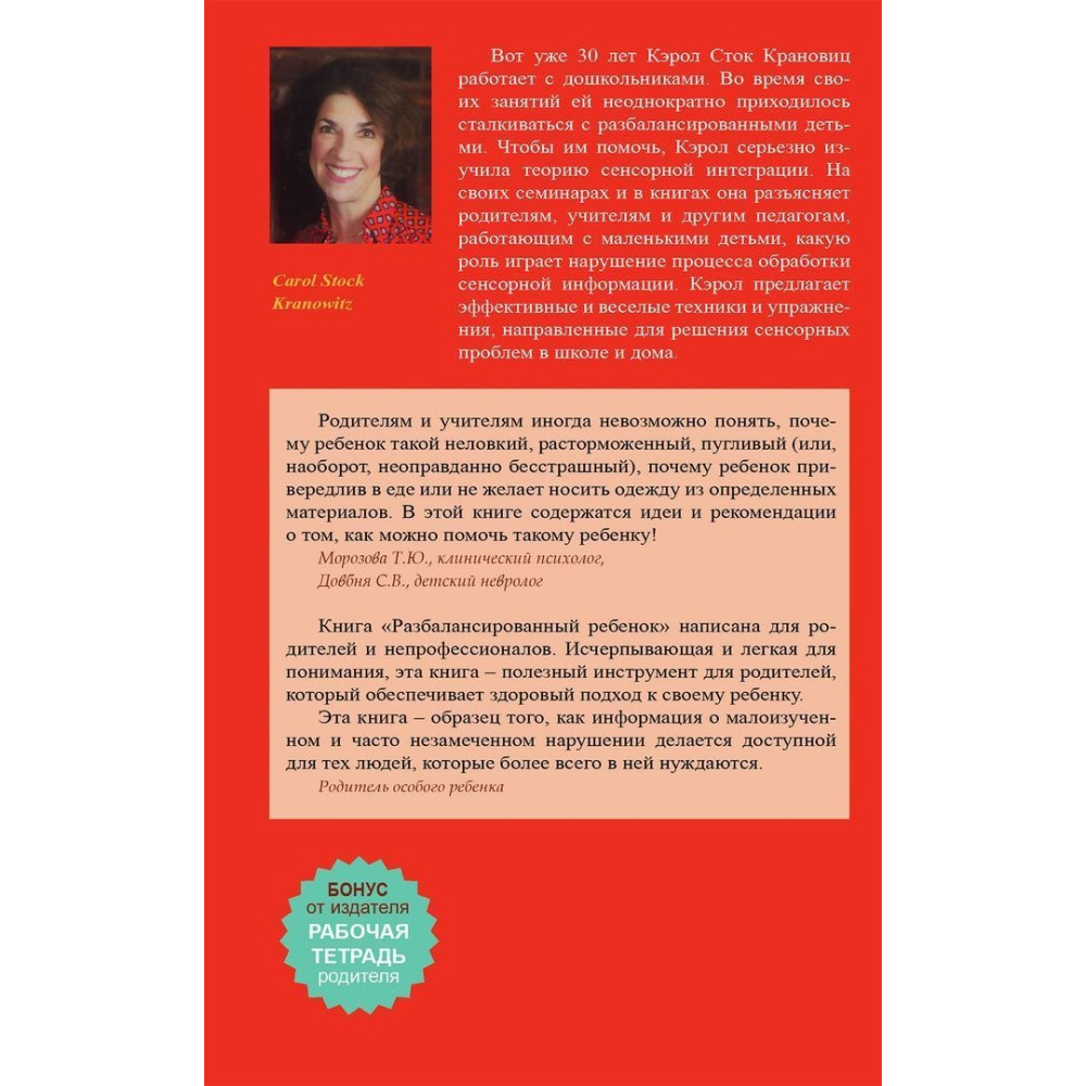 Книжка «Разбалансированный ребенок. Как распознать и справиться с нарушениями процесса обработки сенсорной информации», яку написала Керол С. Крановіц, допоможе зрозуміти читачеві, чому діти часом поводяться дивно і з чим пов'язані особливості дітей, яких ми, дорослі, часто називаємо «важкими».