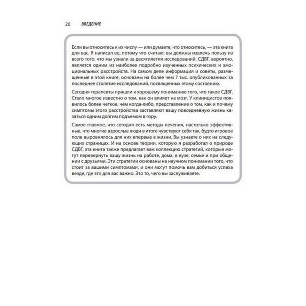 До книжки включено корисні джерела інформації та факти про ліки, а також докладні обговорення таких тем, як уважність, емоційний самоконтроль, управління часом, побудова успішної кар'єри, ведення здорового способу життя та багато іншого. Ця книга — універсальний ресурс, який допоможе відвоювати своє життя у РДУГ. Книга розрахована на широке коло читачів — молодих людей і дорослих, а також практикуючих терапевтів, аспірантів і студентів.