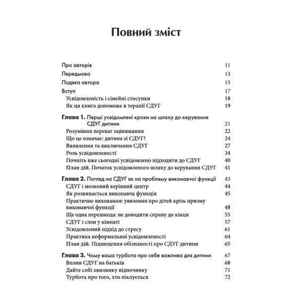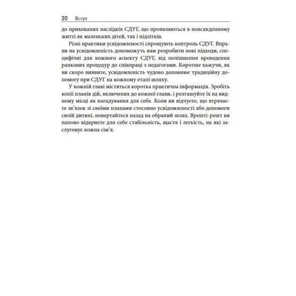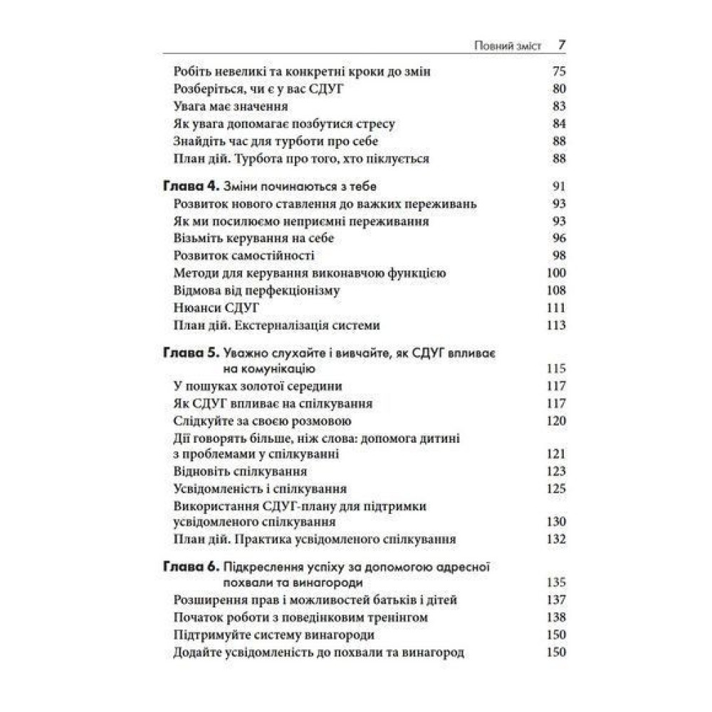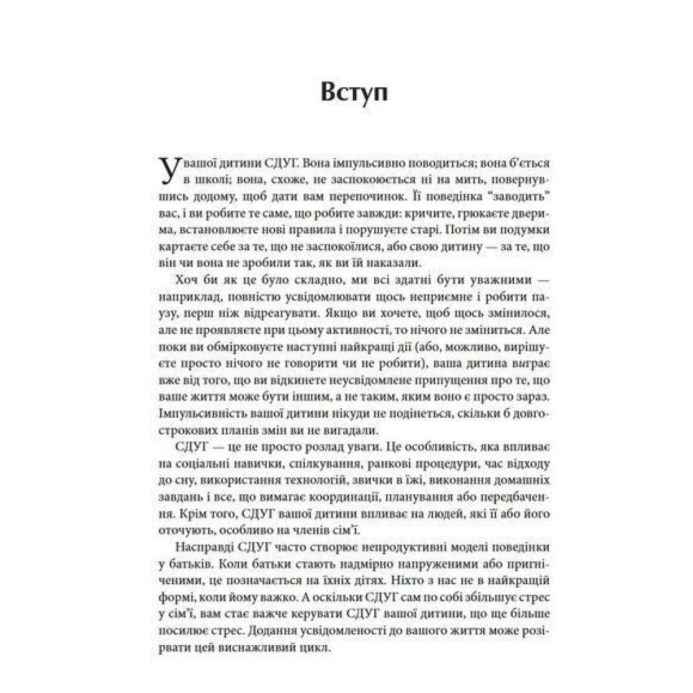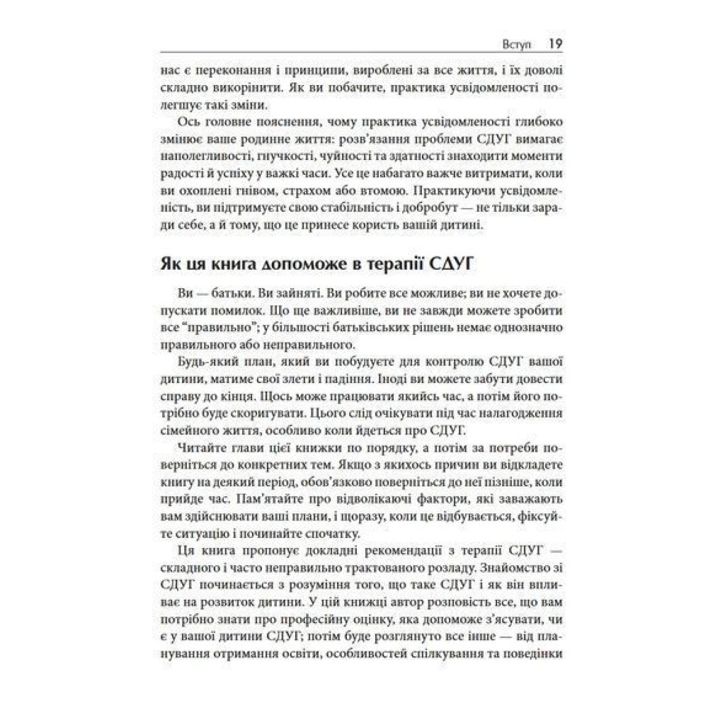 Ви дізнаєтеся, як відрізняти симптоми СДУГ від особливостей характеру дитини, навчитеся об'єктивно оцінювати її сильні та слабкі сторони й отримаєте безліч практичних порад стосовно щоденного контролю СДУГ. Також ви навчитеся справлятися зі своїм стресом, ефективно спілкуватися з дитиною і досягати спокою та гармонії в сім'ї.