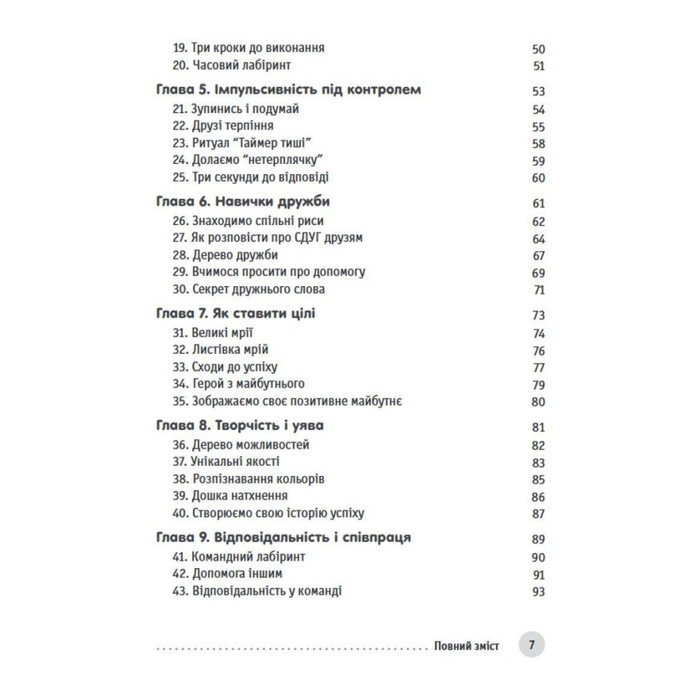 Шейла Хейг та Фелісіті Мітчел пропонують у книжці «Захопливі заняття для розвитку концентрації та самоконтролю у дітей зі СДУГ» креативні підходи у формі цікавих вправ, спрямованих на розвиток концентрації, самоконтролю, емоційної регуляції та соціальних навичок. Разом з батьками діти відкриють секрети дружби, дізнаються, як ставити цілі, розвивати творчі здібності та співпрацювати з іншими.