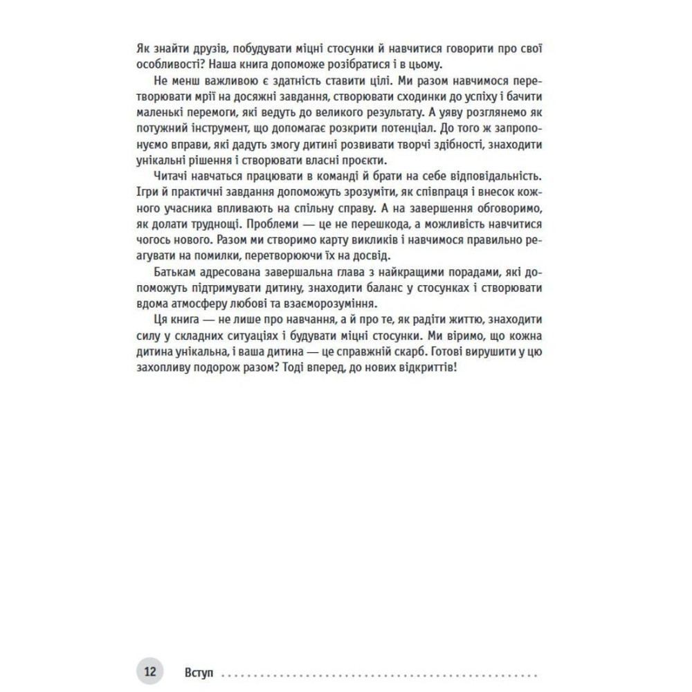 Спеціально для батьків автори підготували корисні рекомендації, які зроблять процес навчання простішим і цікавішим. Книга стане джерелом мотивації, підтримки та натхнення для дітей і тих, хто допомагає їм зростати