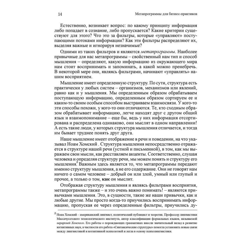 У цій книзі міститься не тільки детальний опис метапрограм з безліччю прикладів їх прояву, а й практичні рекомендації щодо того, як можна використовувати їх в таких сферах, як HR, управління персоналом, продажі та саморозвиток.