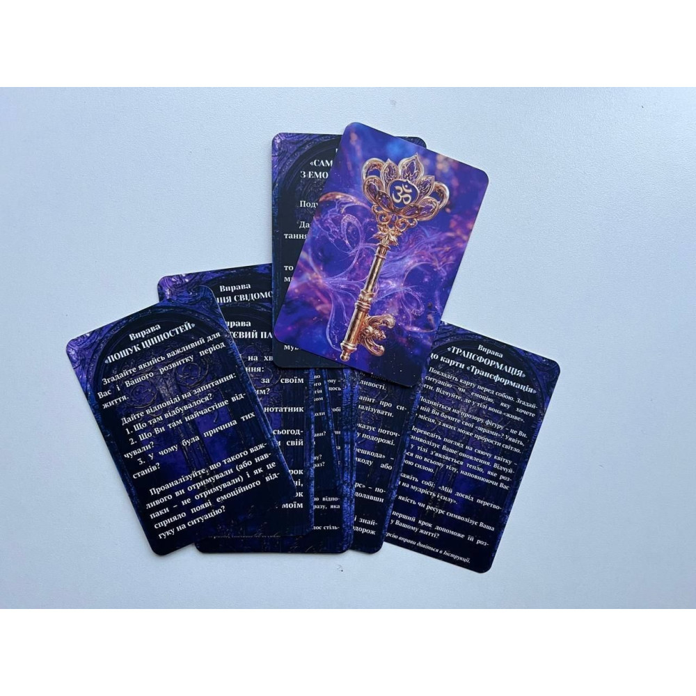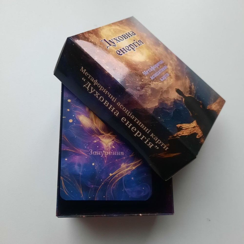 Ця колода створена як інструмент роботи з духовною енергією людини, народжена з потреби торкнутися глибини та внутрішніх істин. Це результат колективного творення команди психологів, митців, езотериків, коучів, духовних практиків. Колода «Духовна енергія» для тих, хто працює з глибиною. Стане потужним інструментом для: