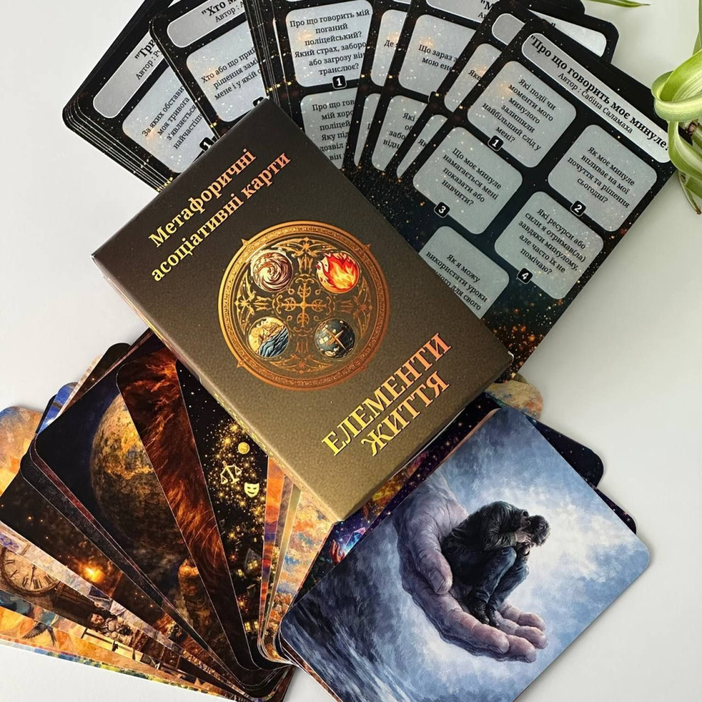 «Елементи життя. Метафоричні карти» Юлії Пінчук — універсальна глибока сюжетна МАК-колода, створена як професійний інструмент для роботи з будь-якими життєвими запитами: від самооцінки й стосунків до криз, трансформацій та прийняття рішень.