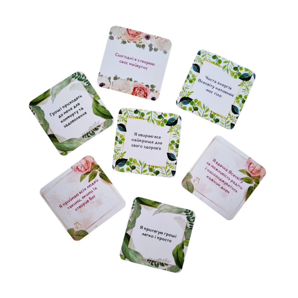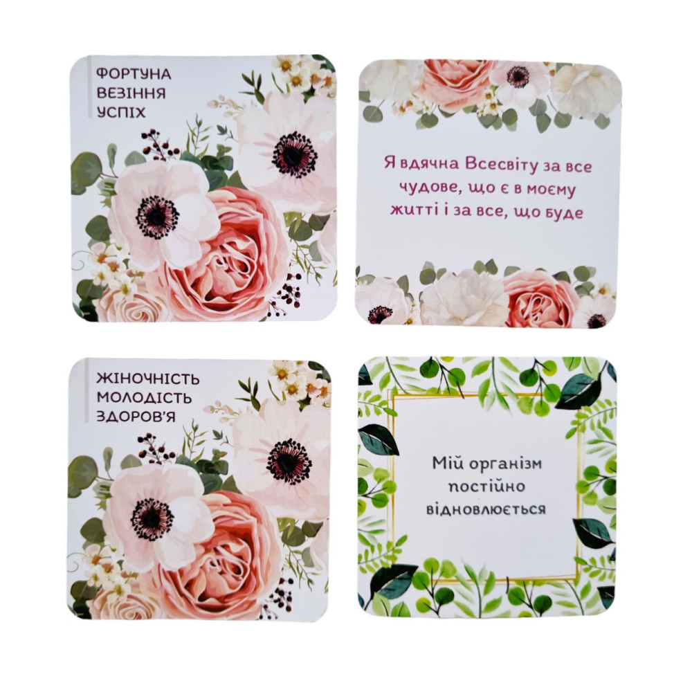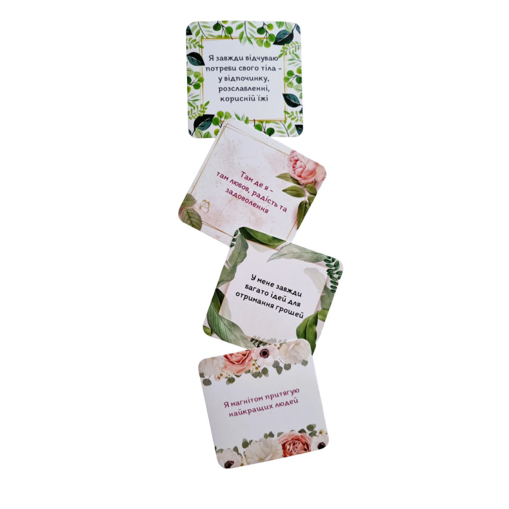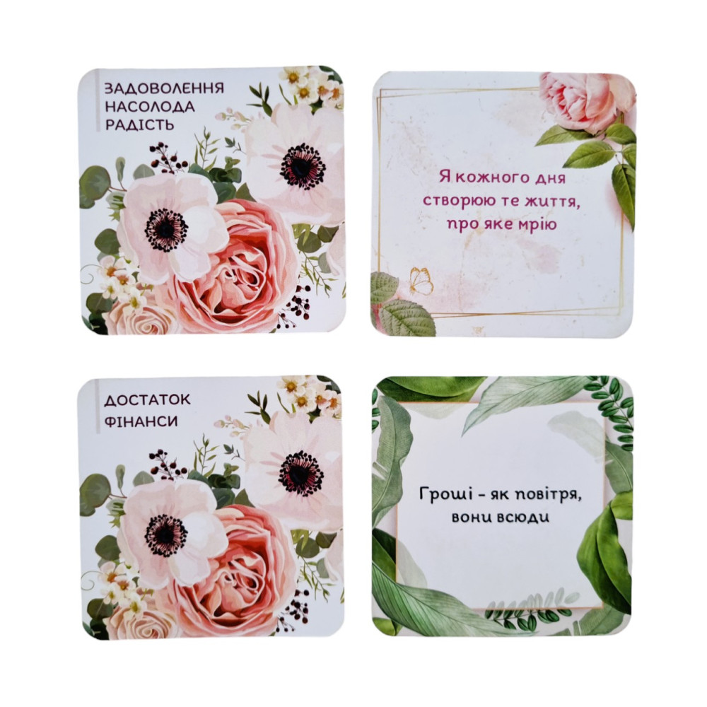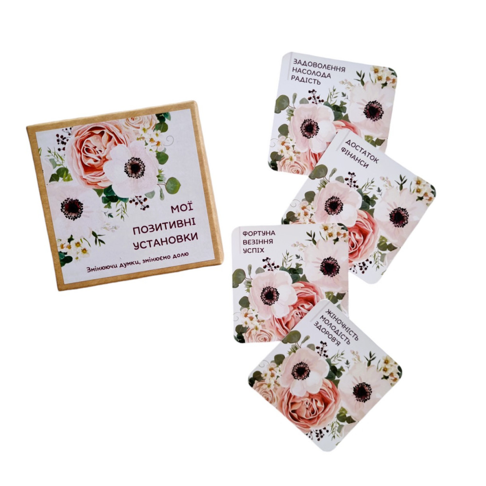 У наборі 60 карток з позитивними установками. Вони розділені на 4 блоки: