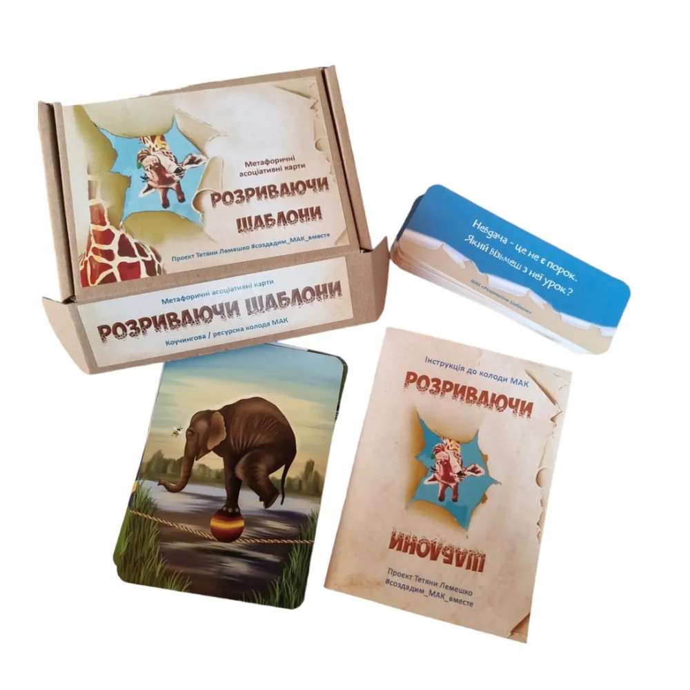 МАК «Розриваючи шаблони» Тетяни Лемешко створені за концепцією коучингової колоди і призначені для коучингу, самокоучингу. Це чітка, структурна колода, що розриває шаблони.