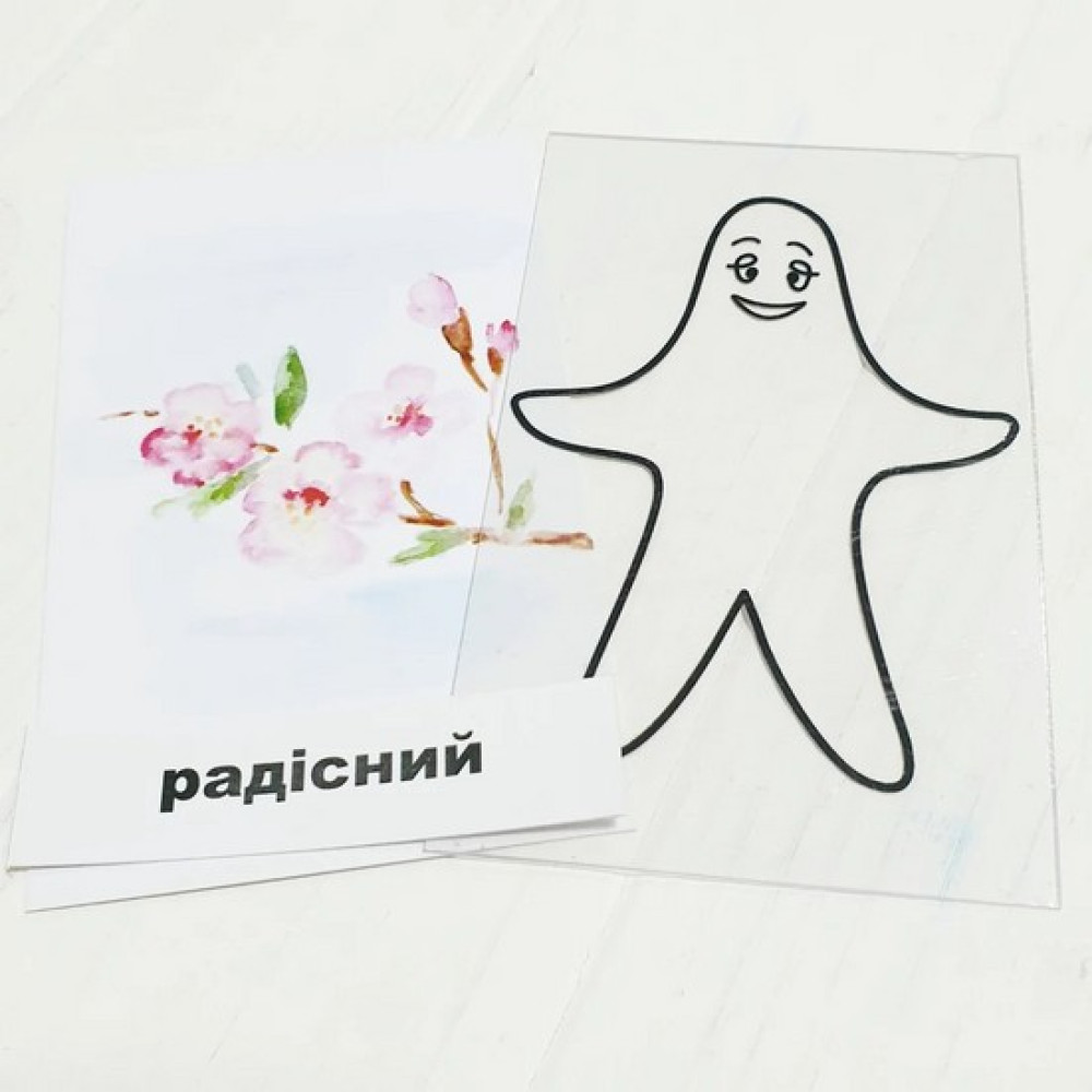 прозорі картки-силуети різних емоційних станів людини — 9 шт;