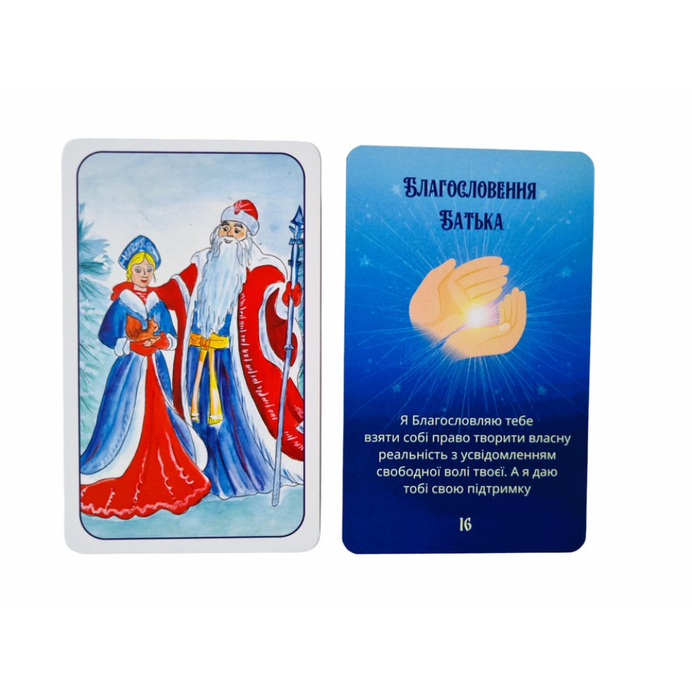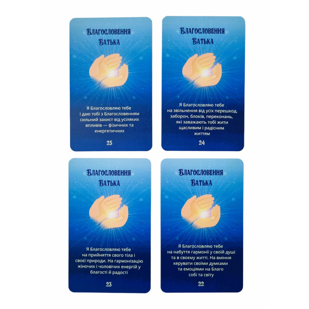 26 двосторонніх карток (з одного боку картинка, з іншого — благословення);