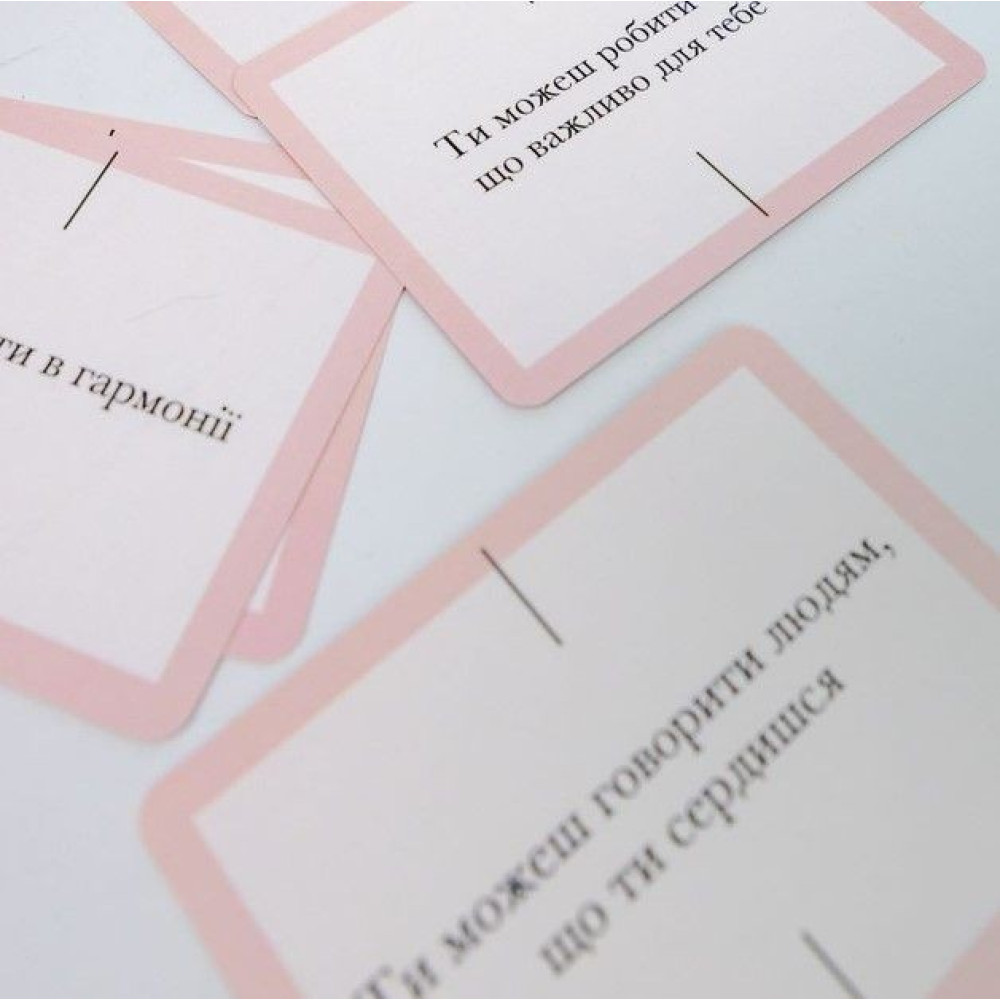 (!) Увага (!): якщо почуватиметеся неприємно чи дискомфортно під час читання конкретного послання, то тоді не практикуйте його деякий час, а витягніть іншу картку яка вам більше до вподоби. А якщо якісь почуття значно зросли коли ви читали якусь із карток, то в такому разі можете звернутися по допомогу до спеціалістів