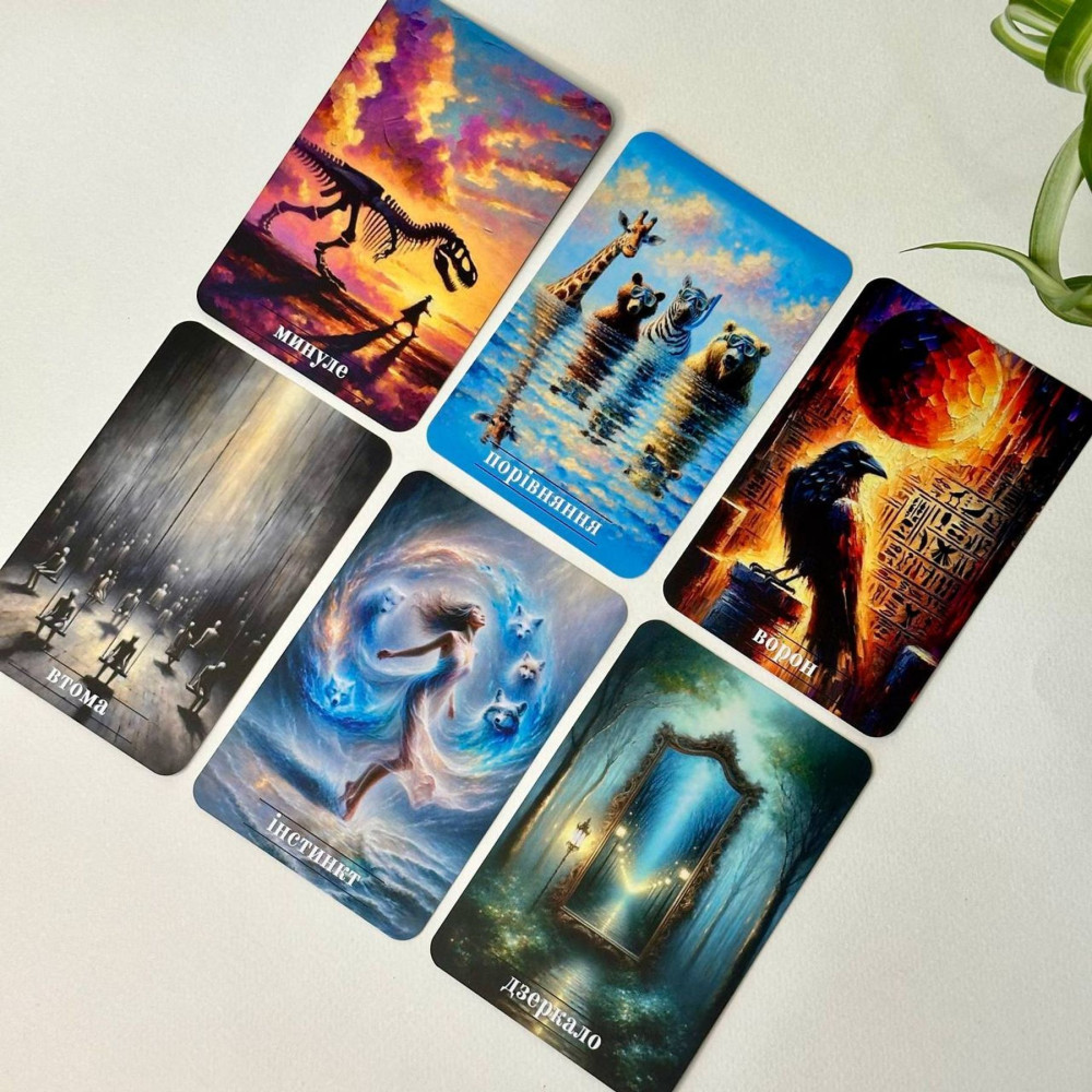 Кожна карта в МАК «Правда. Метафоричний оракул» від Юлії Пінчук — це дзеркало підсвідомості і провідник до власної правди. Образи пробуджують асоціації, а ключові слова відкривають нові сенси. Колода не про ворожіння, а про усвідомлення, розвиток і роботу з істинною природою.