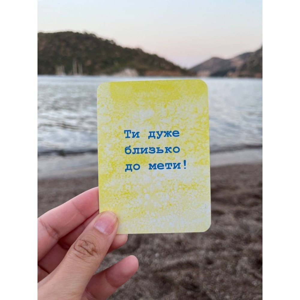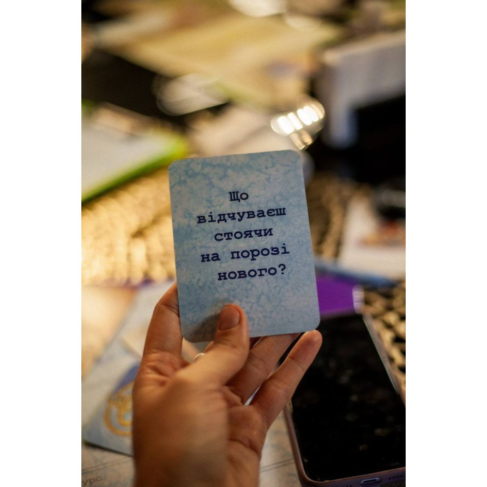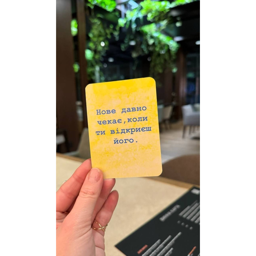 Карти-двері містять на звороті коучингові питання, що допомагають краще розібрати свій запит, а карти-ключі на звороті мають послання, що додаватимуть впевненості в собі.