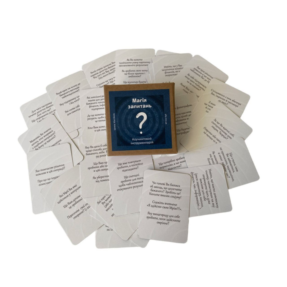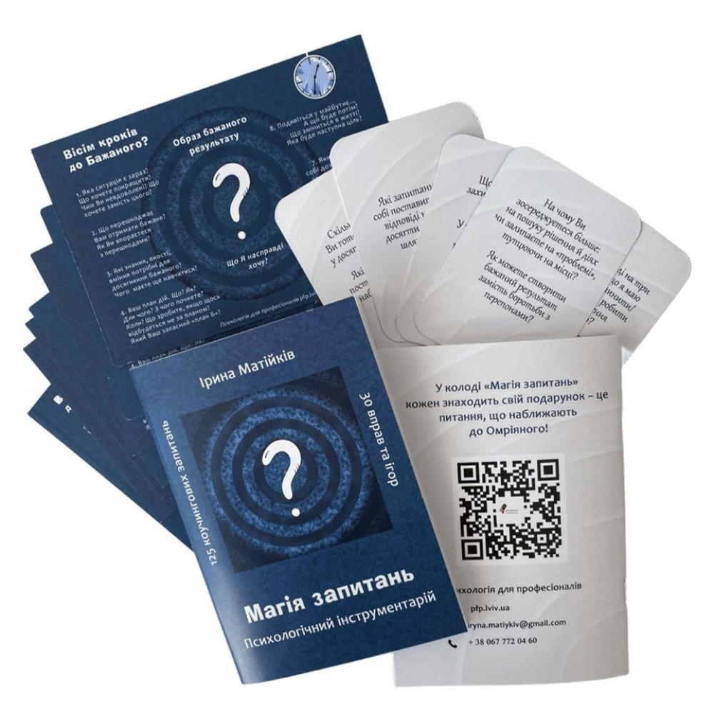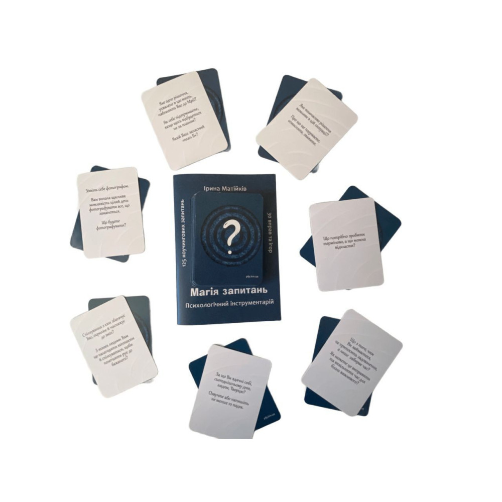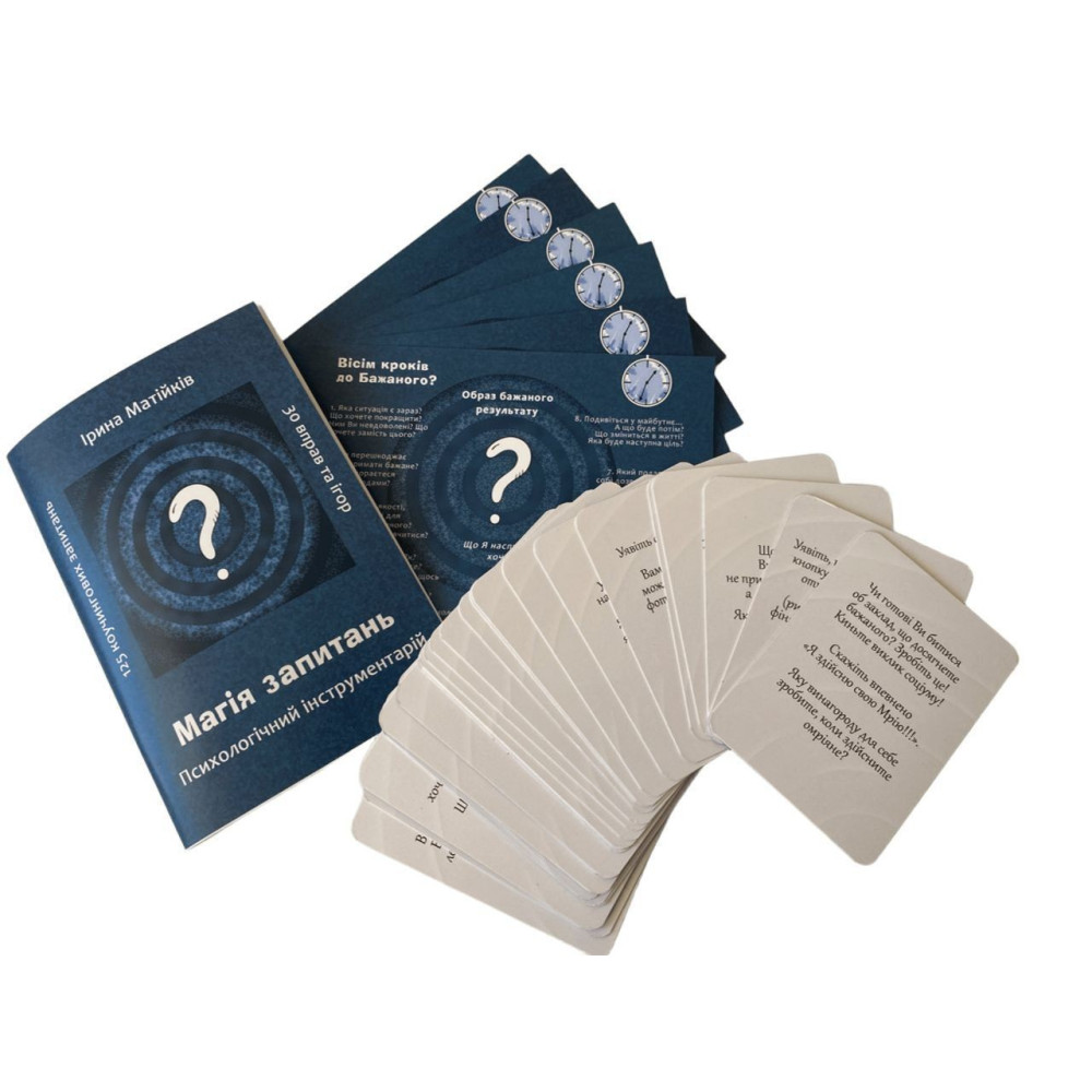 Колода «Магія запитань» від Ірини Матійків містить 125 карток із запитаннями, які дають змогу уточнити ситуацію, виявити перепони на шляху до бажаного, знайти альтернативні способи владнання ситуації та обрати найкращий, спланувати дії й перші кроки, наповнитися впевненістю та внутрішньою силою для цілеспрямованого руху. Здебільшого колода містить трансформаційні запитання, що сприяють змінам у мисленні людини, яка на них відповідає. Людина починає думати інакше і швидше знаходить рішення.