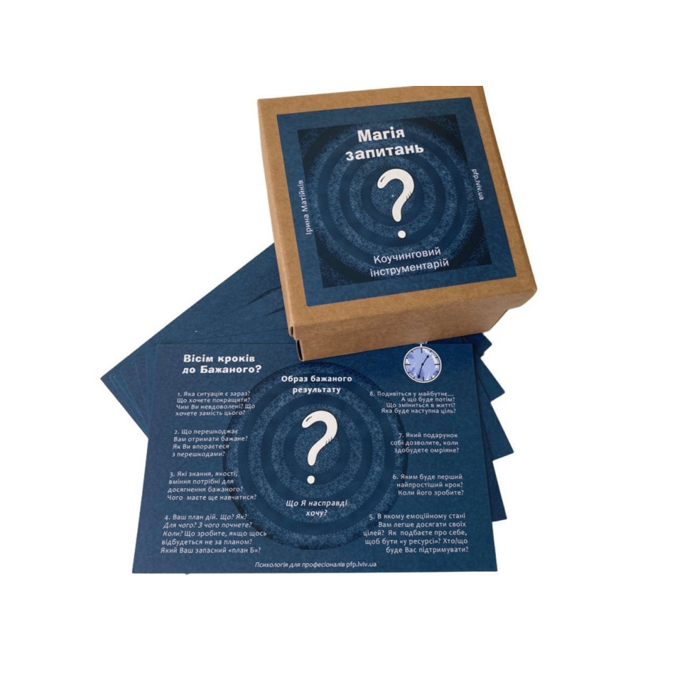 Результативність консультування (з владнання ситуації, досягнення бажаного, впровадження змін) залежить від якості сформульованих запитань. На кожному етапі консультаційного процесу коуч може запропонувати клієнту витягти з колоди «Магія запитань» (відкрито чи наосліп) запитання та надалі працювати з цими запитаннями. Кількість запитань визначається бажанням клієнта. Відповіді та важливі ідеї клієнт записує. Відповідаючи на запитання, клієнт сам знаходить кращі рішення своїх життєвих завдань.